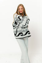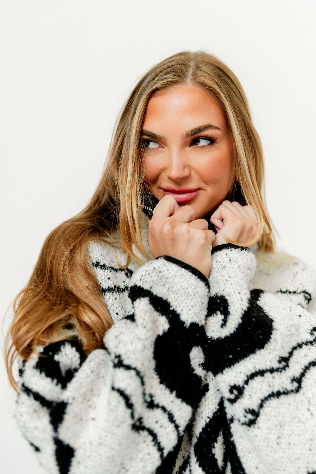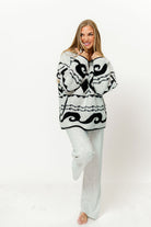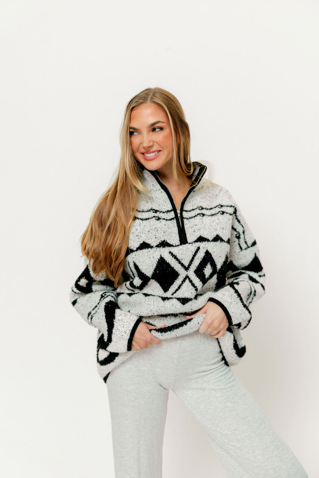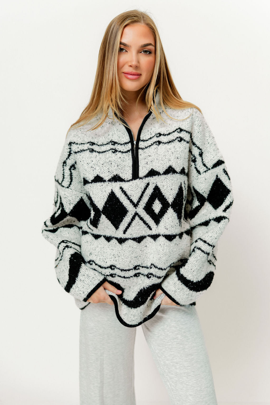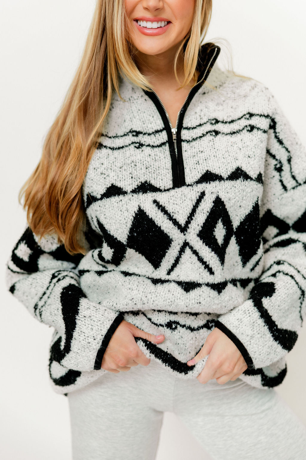 Sterling Oversized Quarter Zip Pullover in Ivory/Black