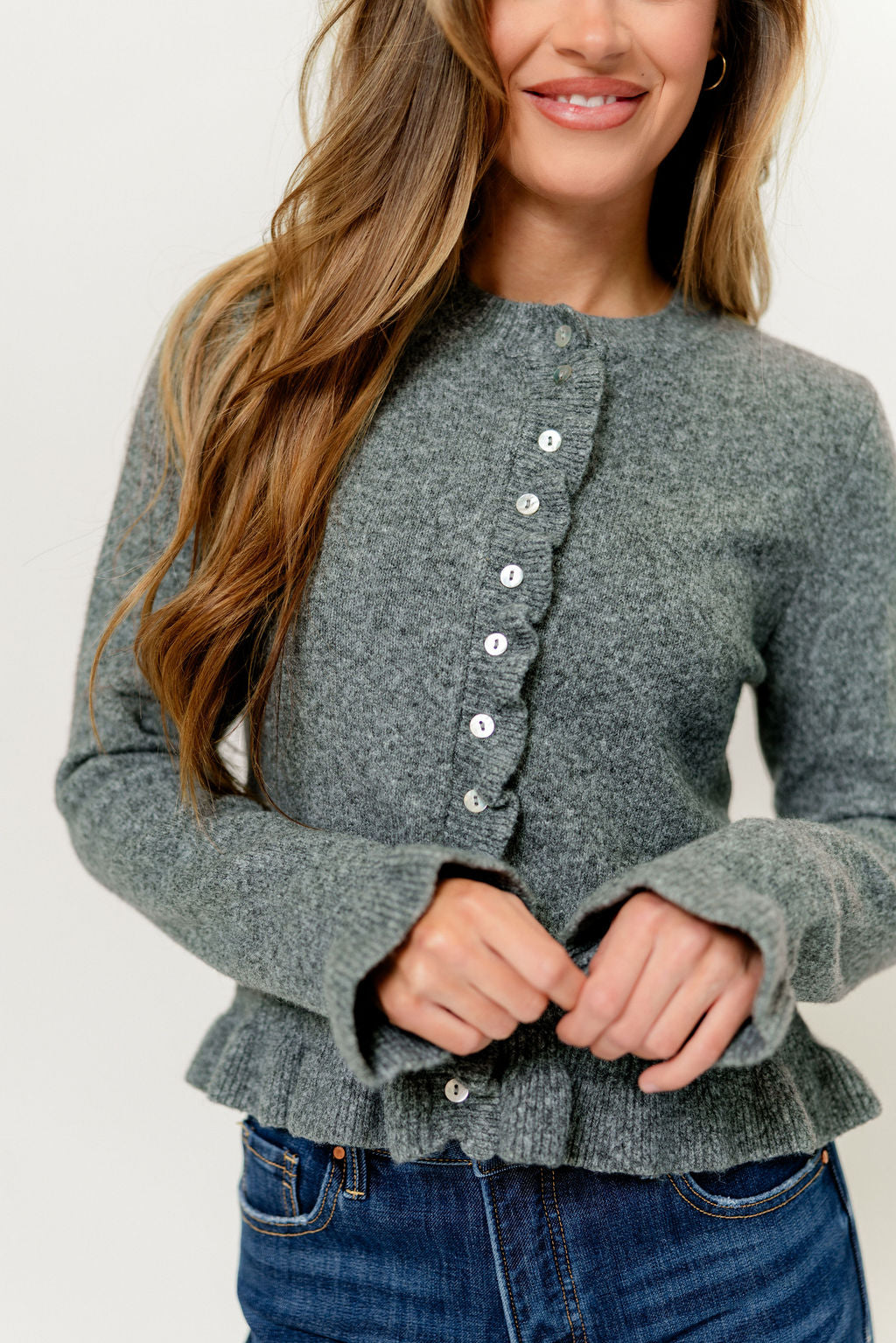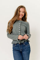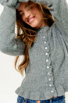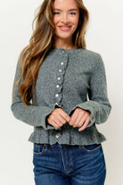 Suzie Ruffle Knit Cardigan Top in Heather Grey
