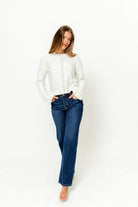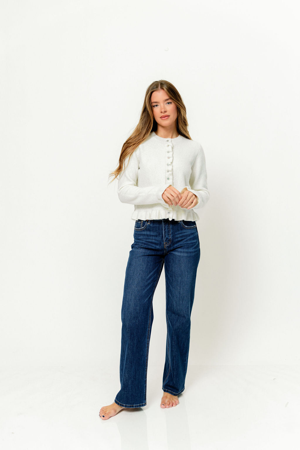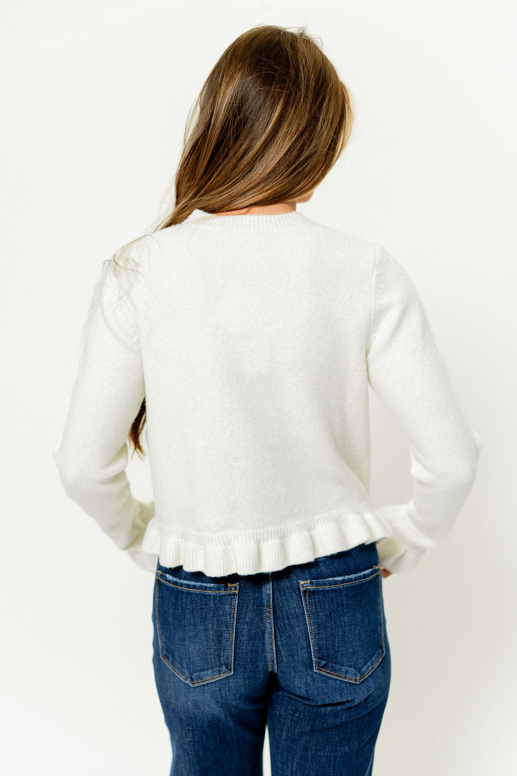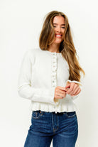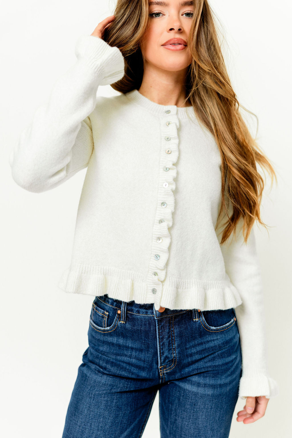 Suzie Ruffle Knit Cardigan Top in Off-White