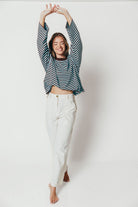 Sam Oversized Striped Basic Top in Light Blue/Brown