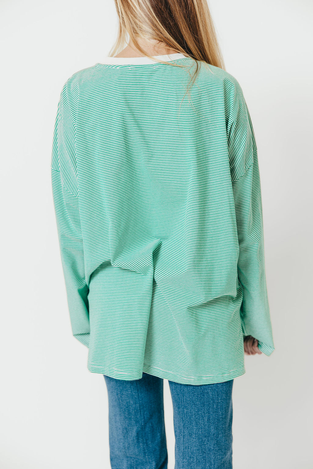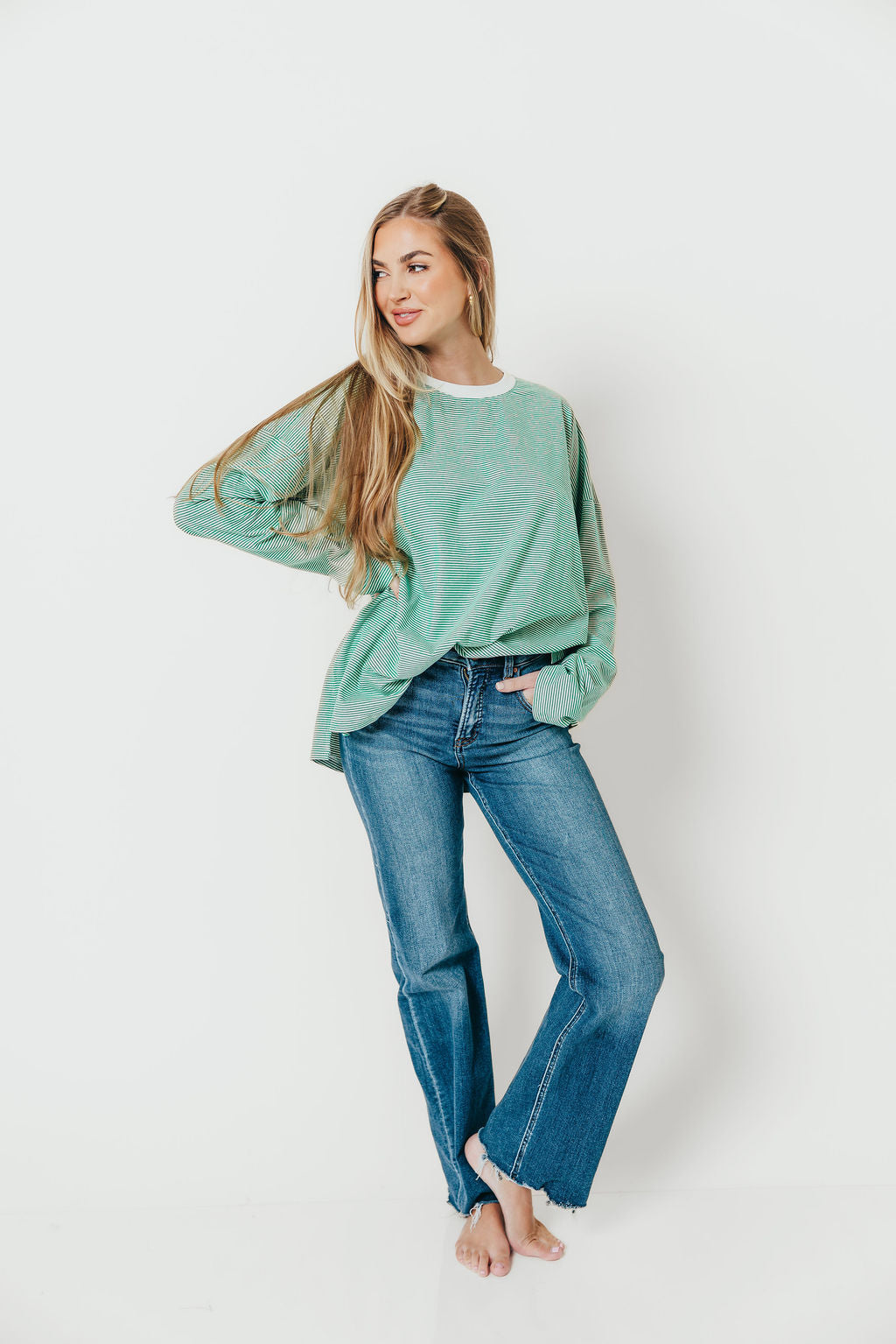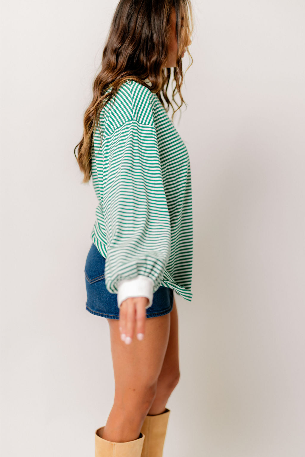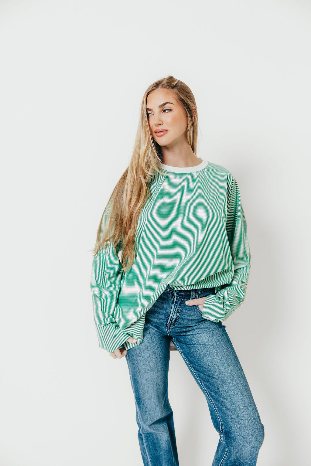 Benni Crew Neck Striped Long Sleeve Top in Apple Green