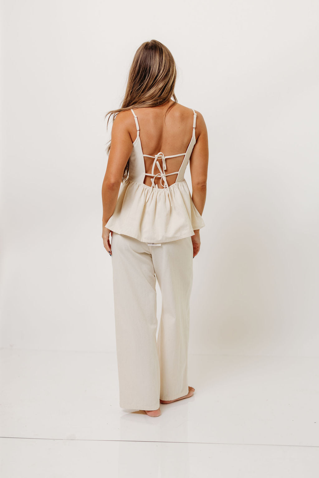Keira 100% Cotton Bow Trim Peplum Top in Cream