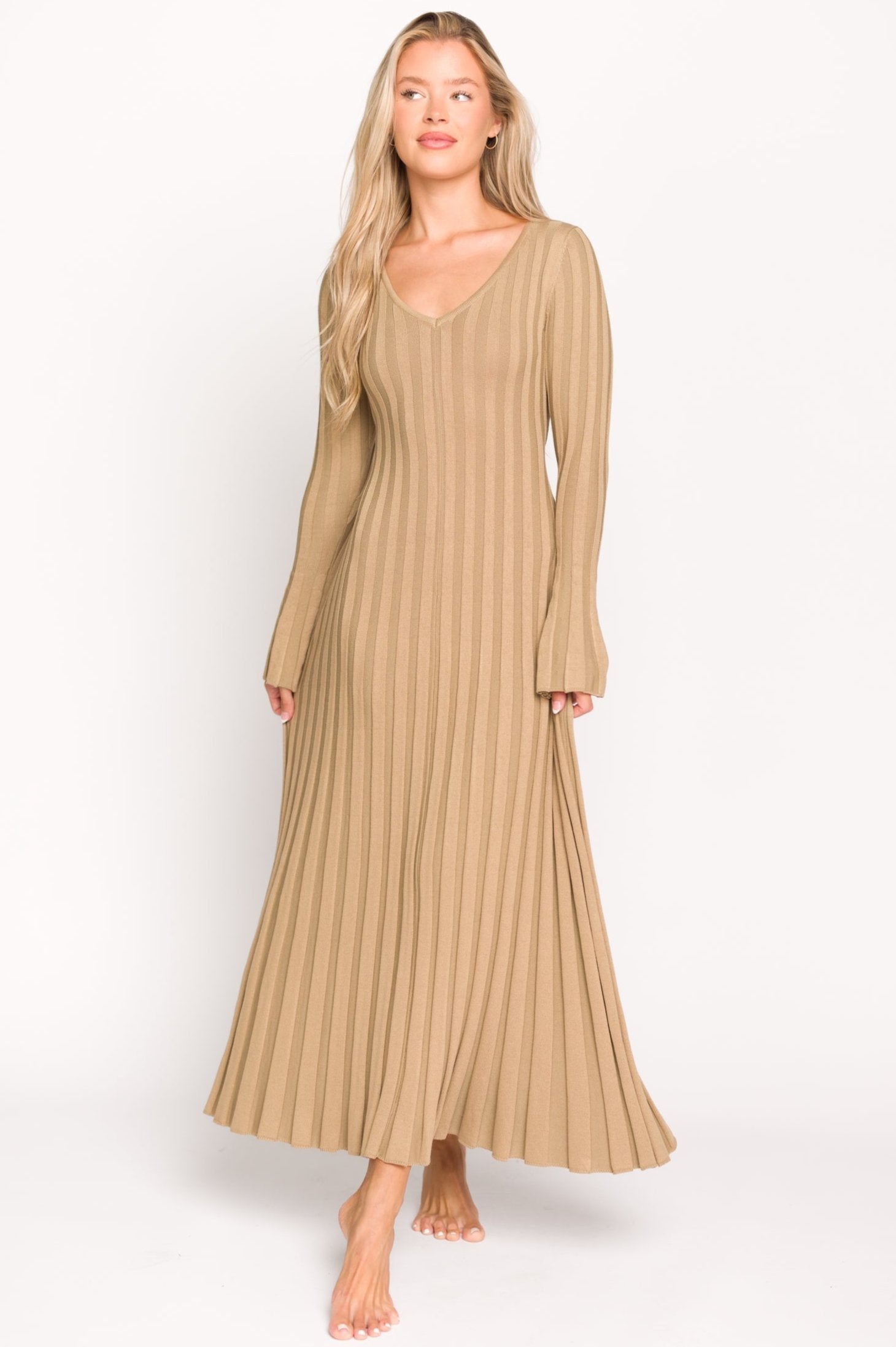 Hadley Long Sleeve V-Neck Knit Maxi Dress in Espresso