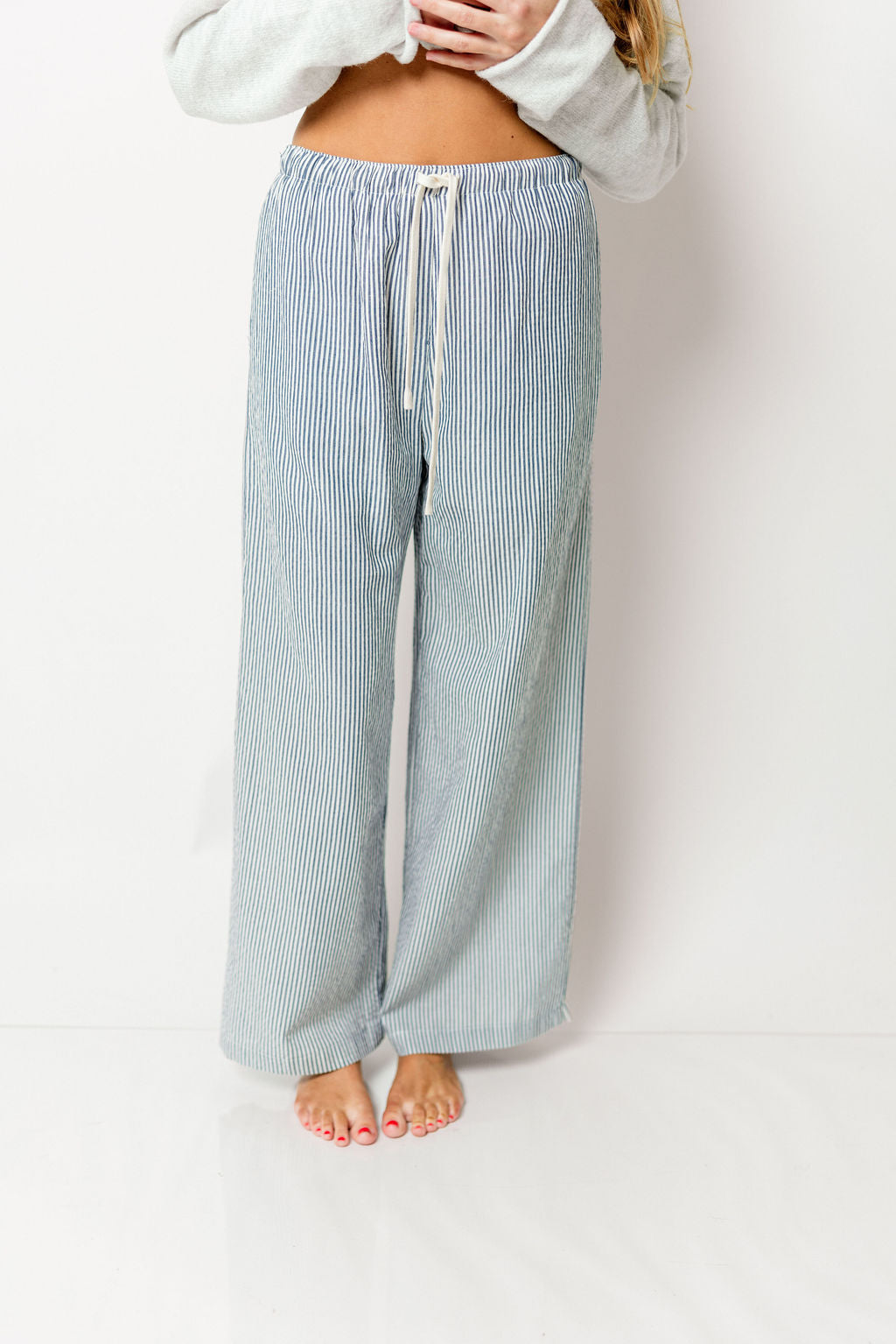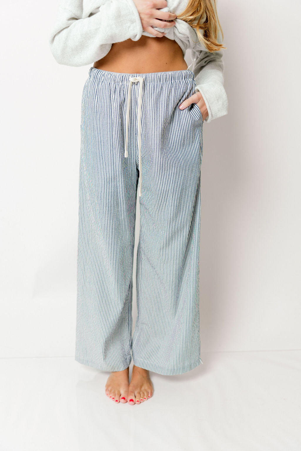 GARMENT DETAILS: Cozy lightweight lounge pants in a cotton-blend weave, with drawstring waistband and side pockets. Features a wide leg silhouette and comfortable fit.