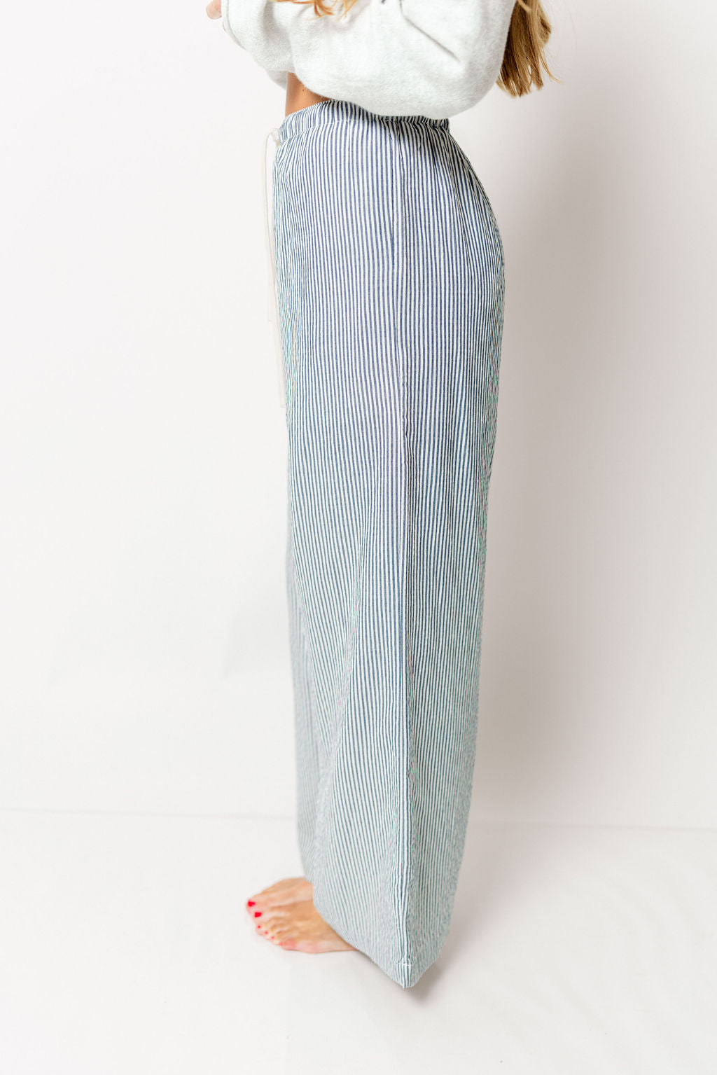 Your winter wardrobe isn't complete without the Cal Striped Pants! These lightweight pants offer trendy comfort, with an adjustable drawstring waist and side pockets for all your must-haves.