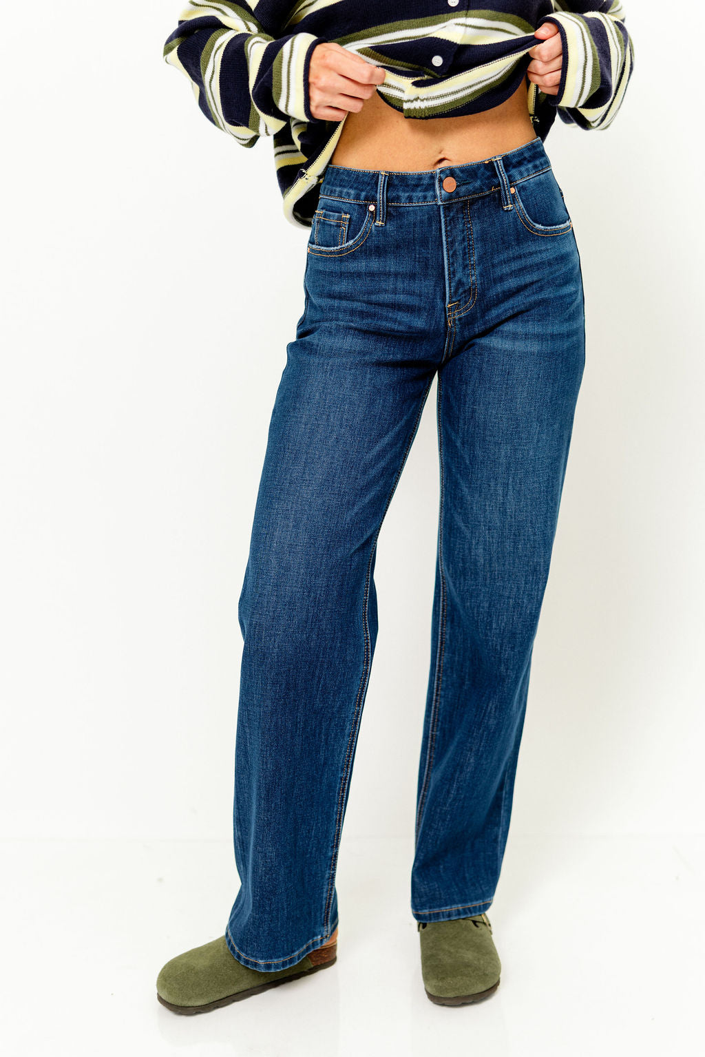 GARMENT DETAILS: Soft, straight-leg jeans with high waist, 5-pocket styling, and 4-way stretch for maximum comfort.