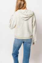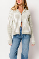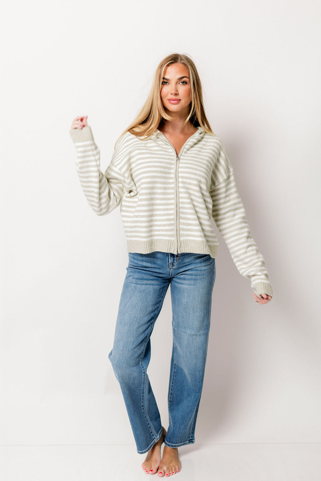 GARMENT DETAILS: Versatile sweater-knit jacket with two-way front zipper and attached hoodie. Finished with contrast color ribbed knit trim.