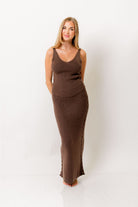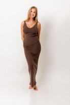 Mariella Knit Tank and Maxi Skirt Set in Brown