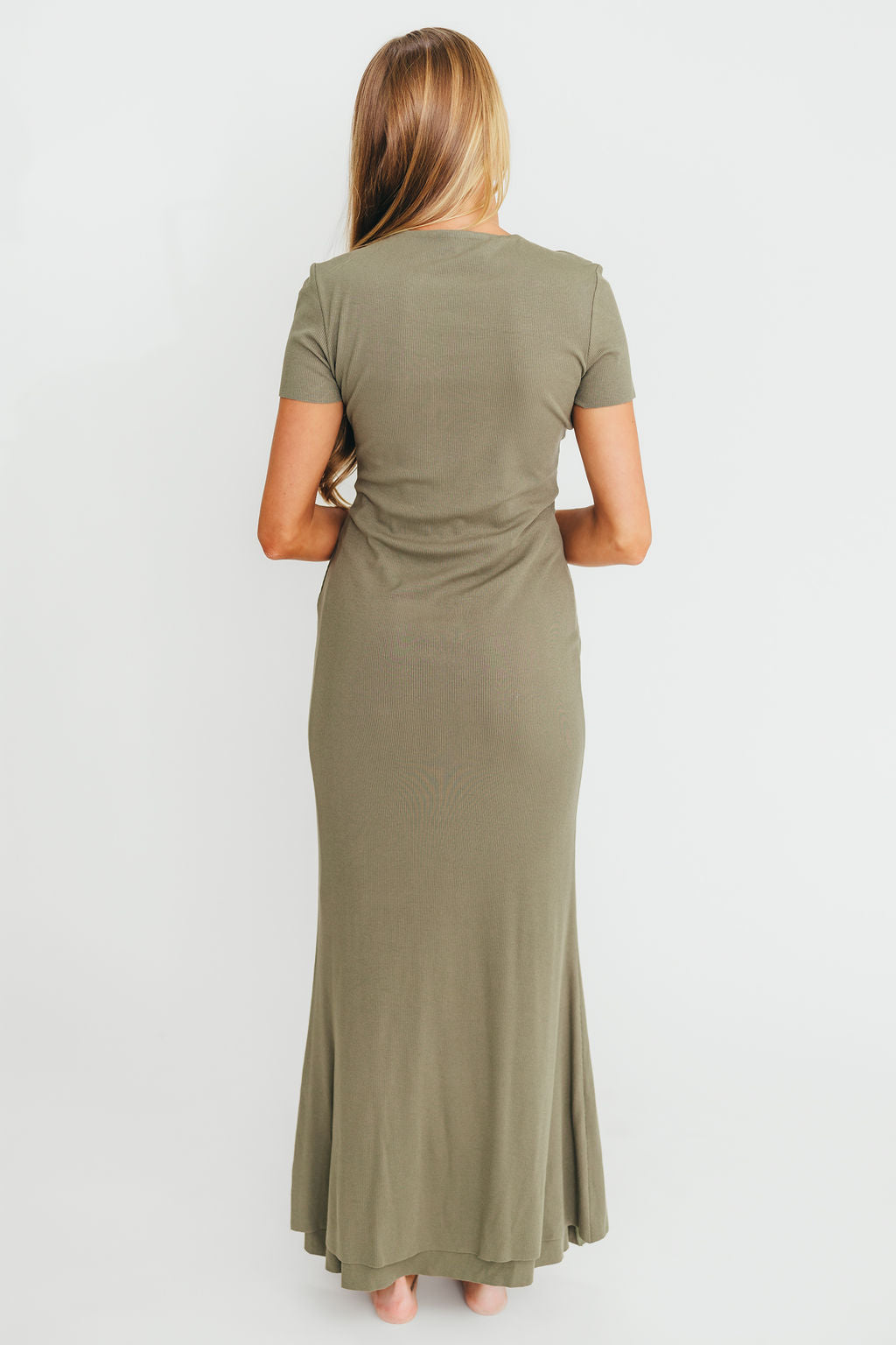 The Charlie Ribbed Maxi Dress in Dusty Olive Green - Bump Friendly *Final Sale*
