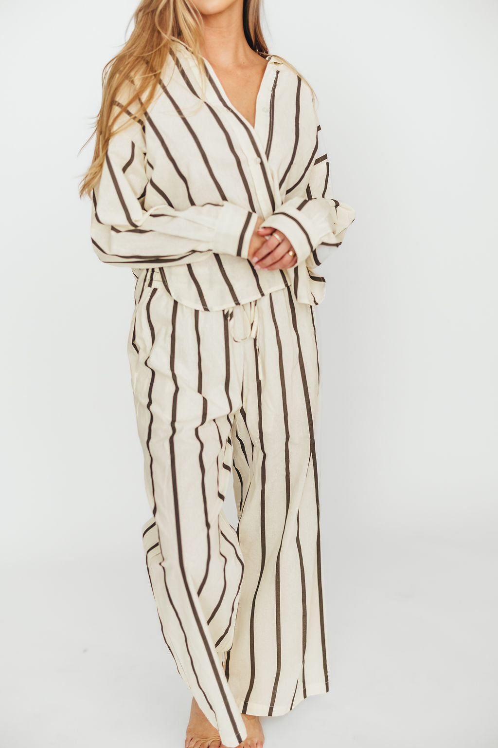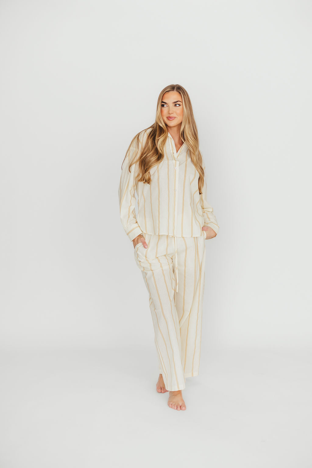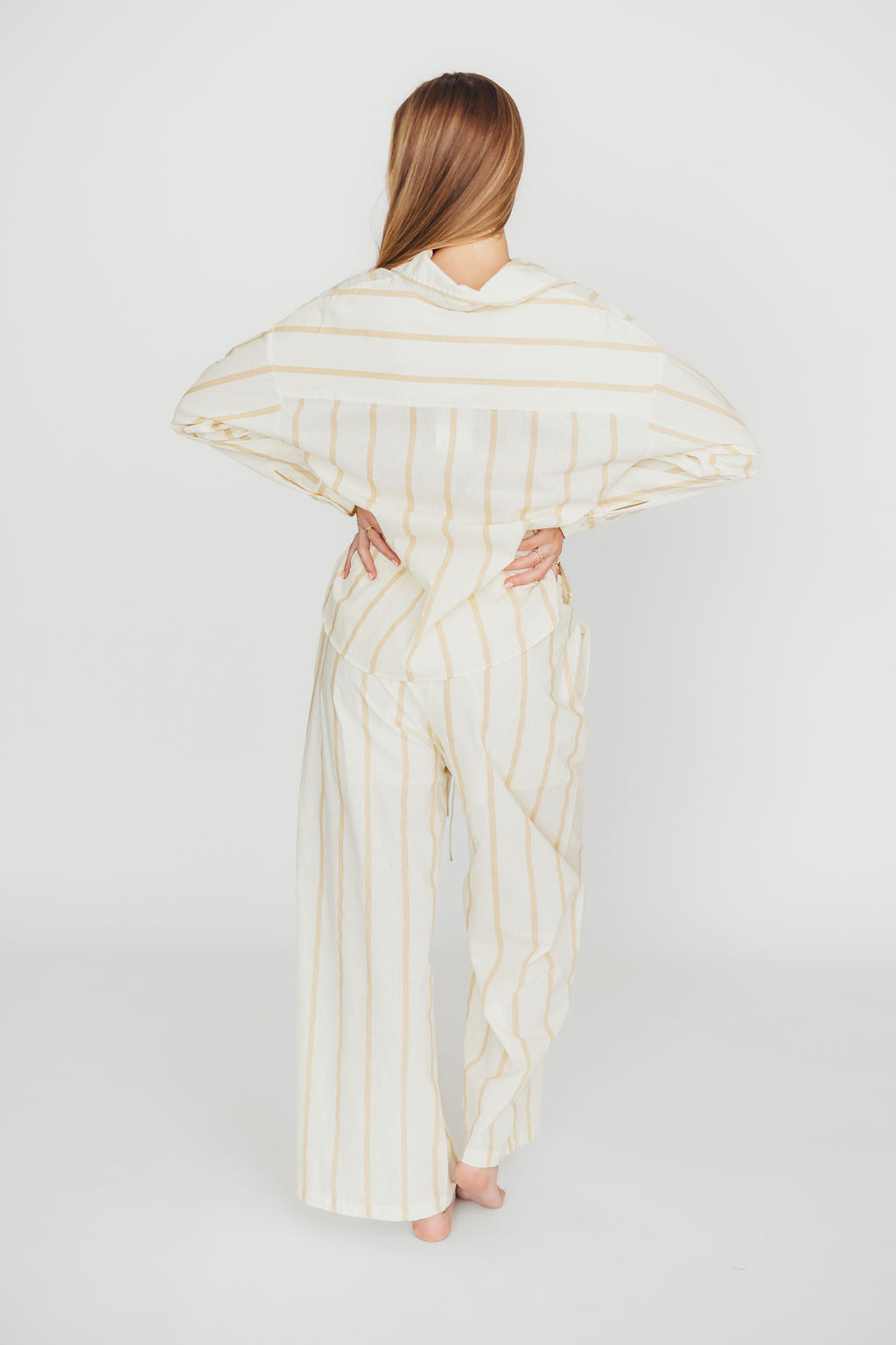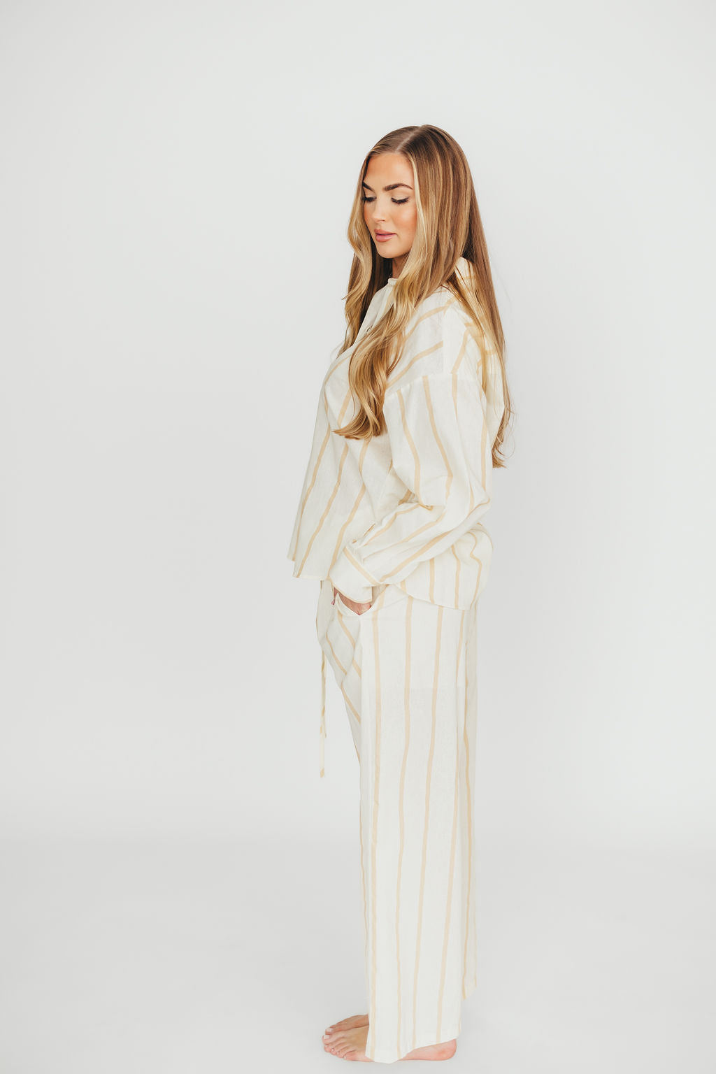 Sicily Button-Down Top in Beige Stripe - Nursing Friendly *Final-Sale*
