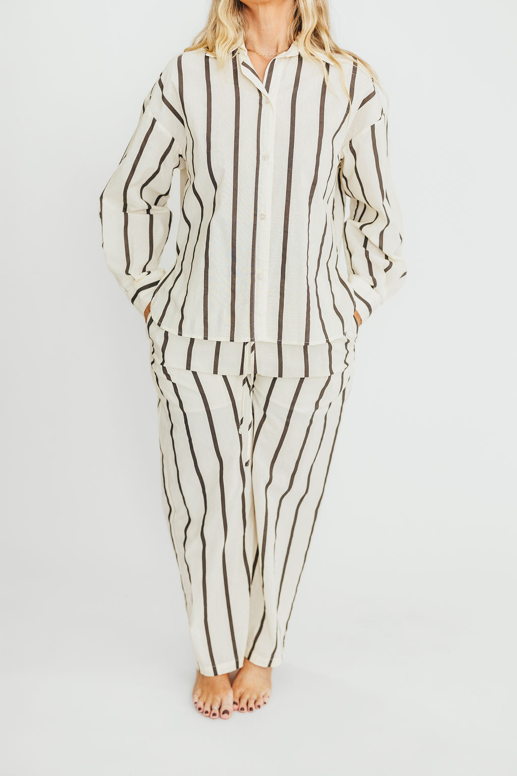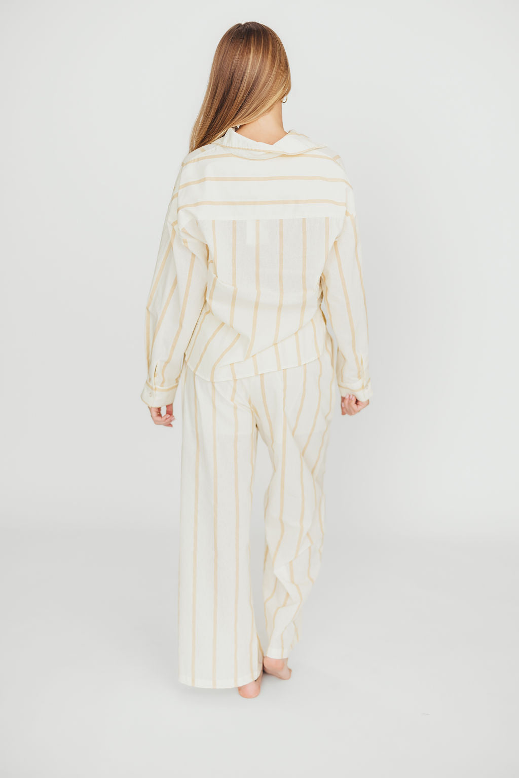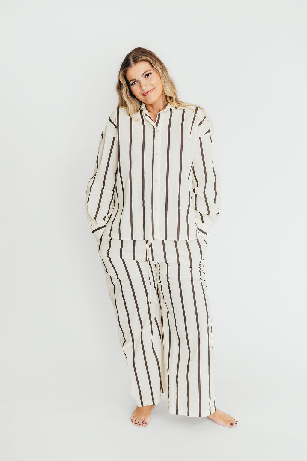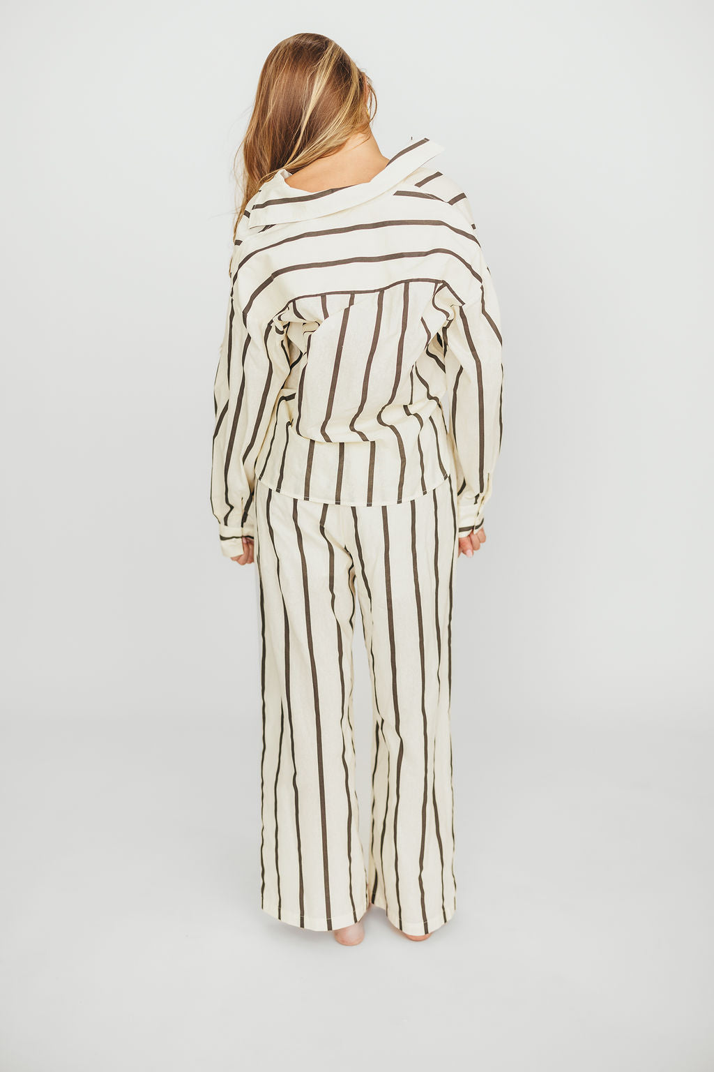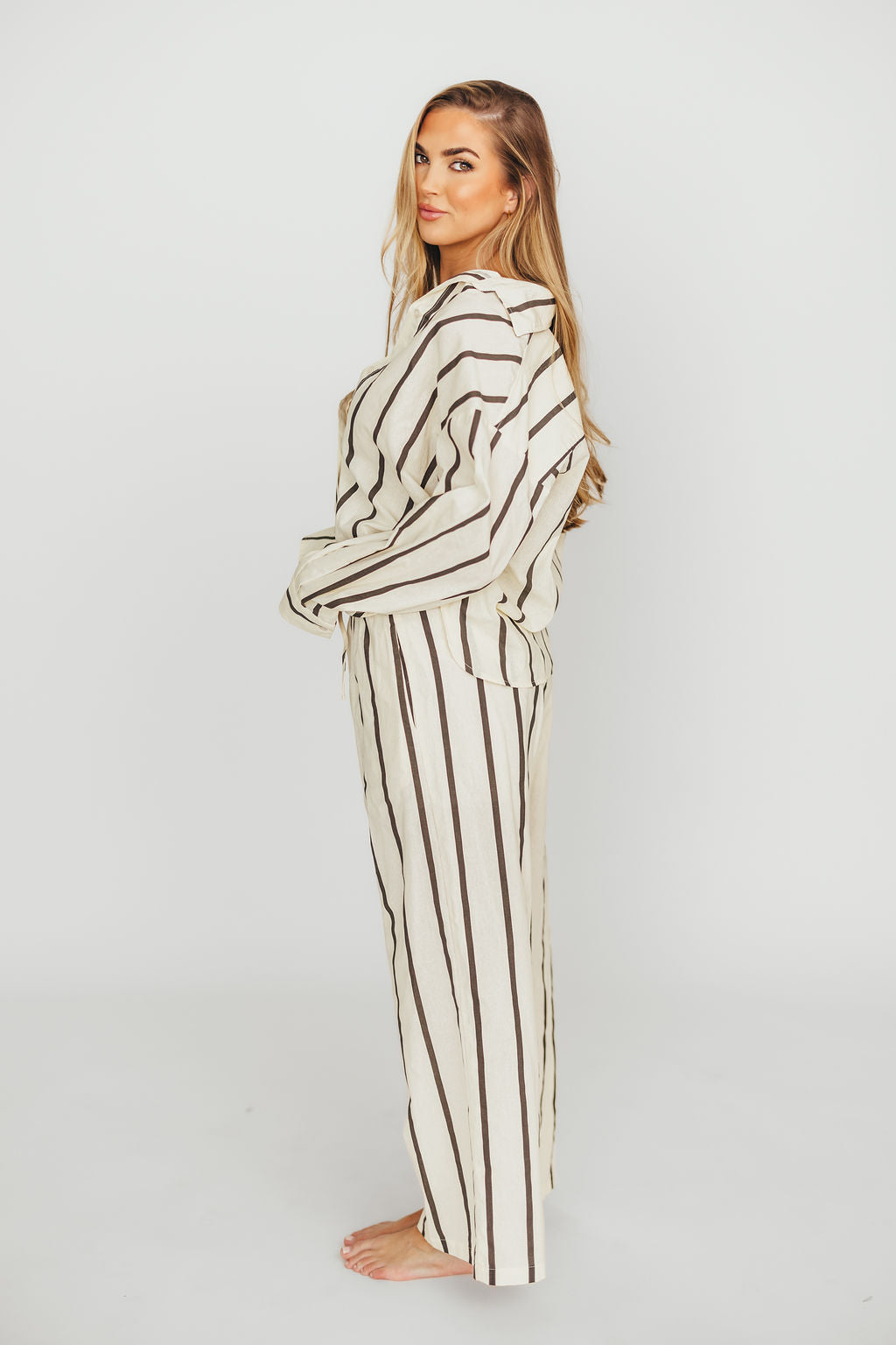 Sicily Button-Down Top in Beige Stripe - Nursing Friendly *Final-Sale*