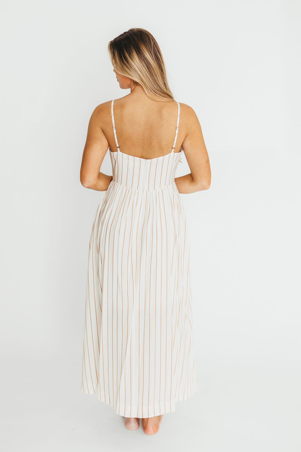 Genesis Stripe Midi Dress in White/Taupe *Final-Sale*