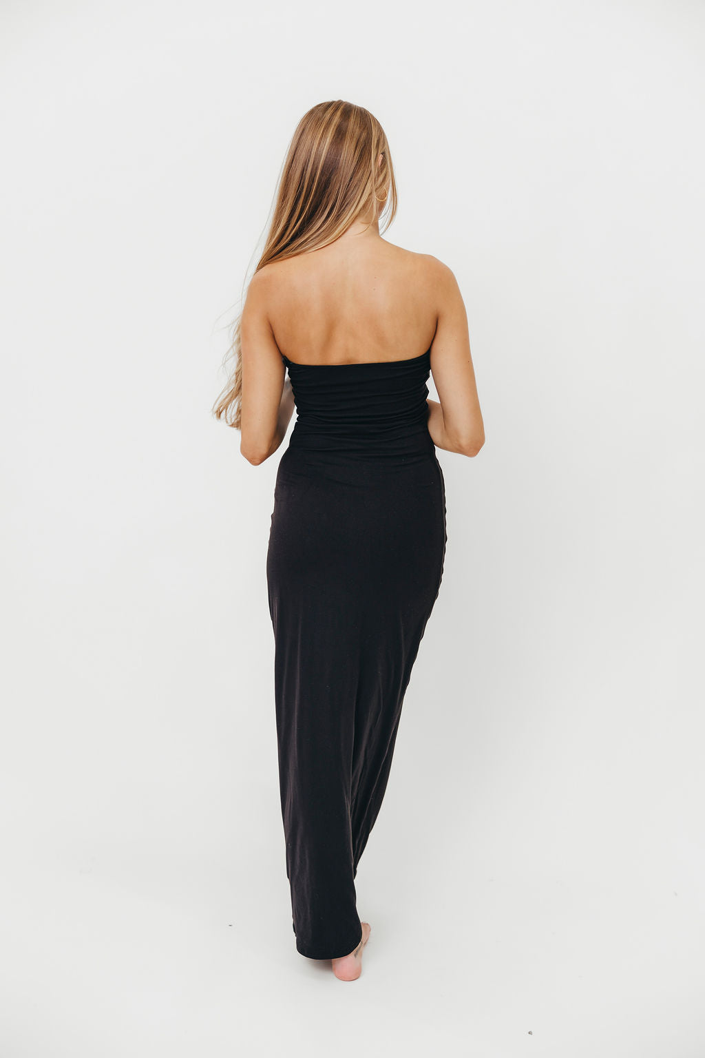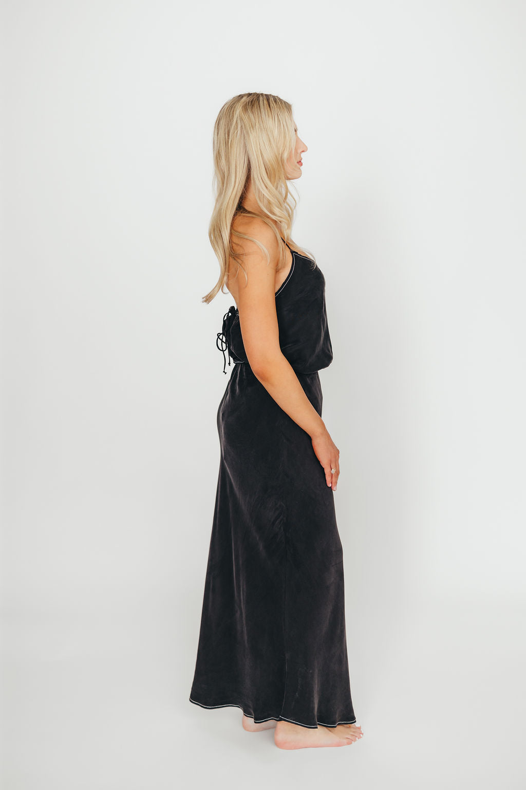 Kaylee Linen and Ribbed Knit Maxi Dress in Black/Tan