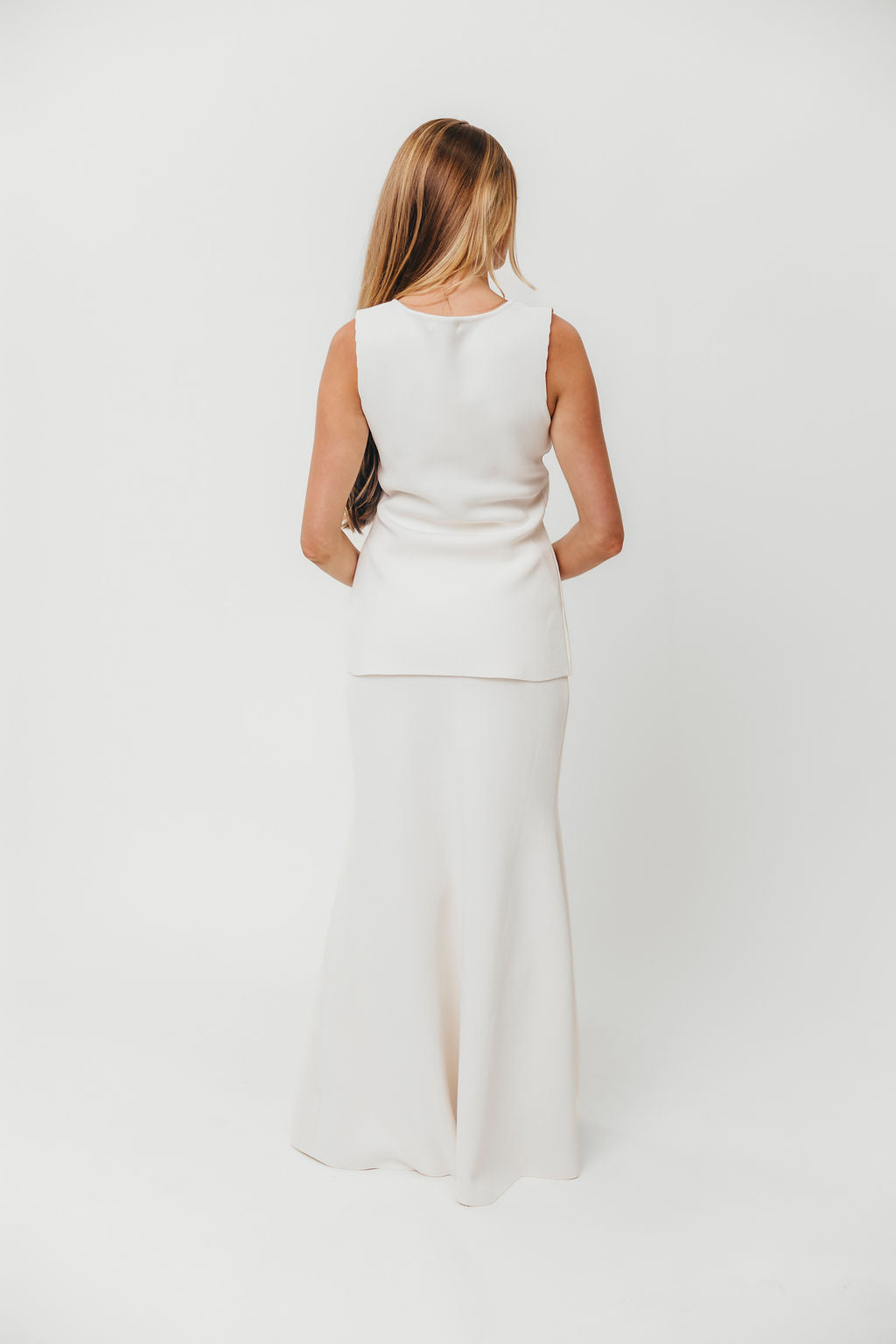 Premium Lauri Sleeveless Button Down Top and Maxi Skirt Set in Off White *Final-Sale*
