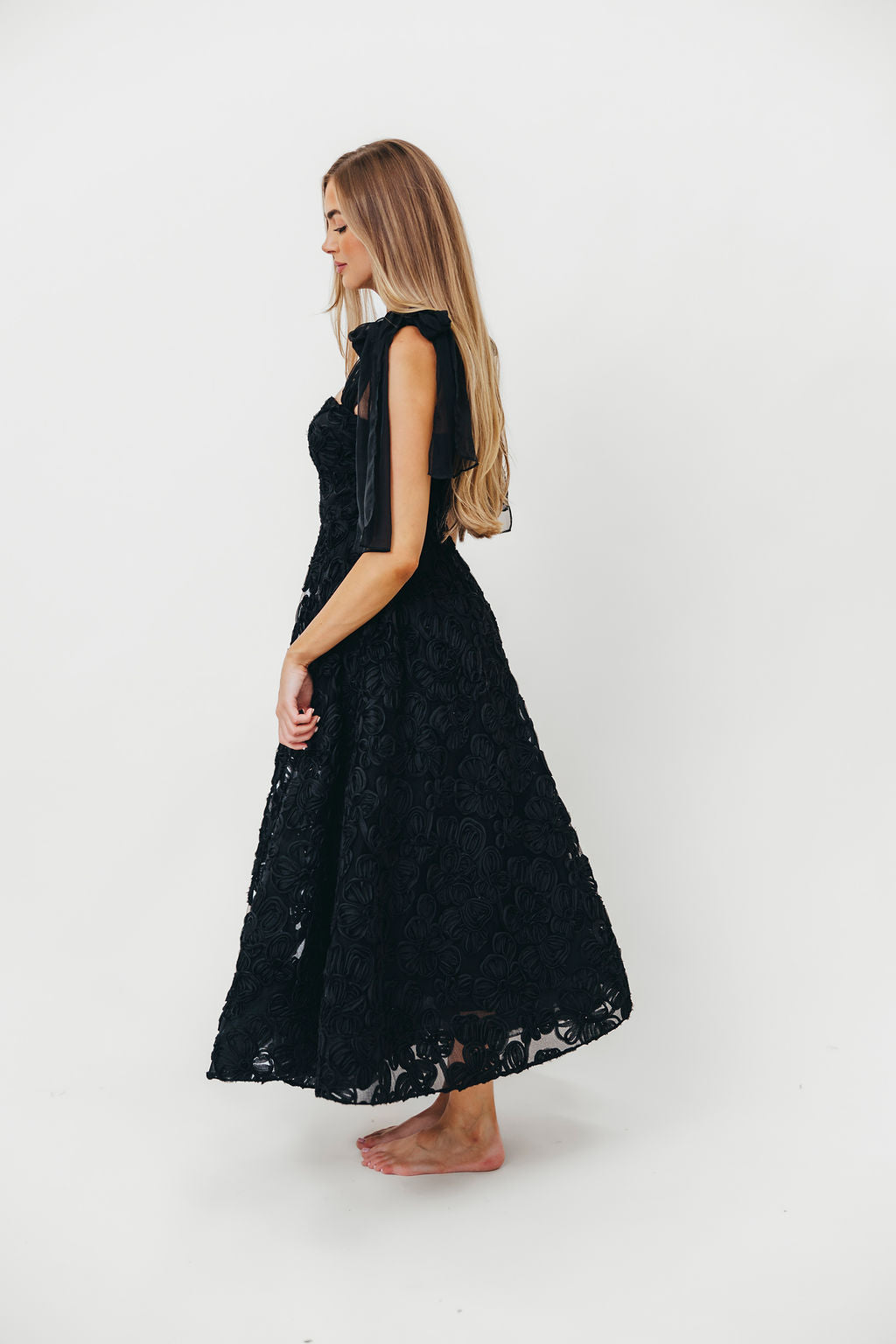 Zinnia 3D Textured Lace Midi Dress in Black *Final-Sale*