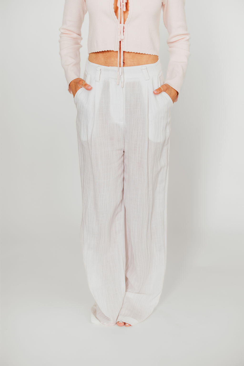 Jeanette 100% Linen Pants in White *Final-Sale*