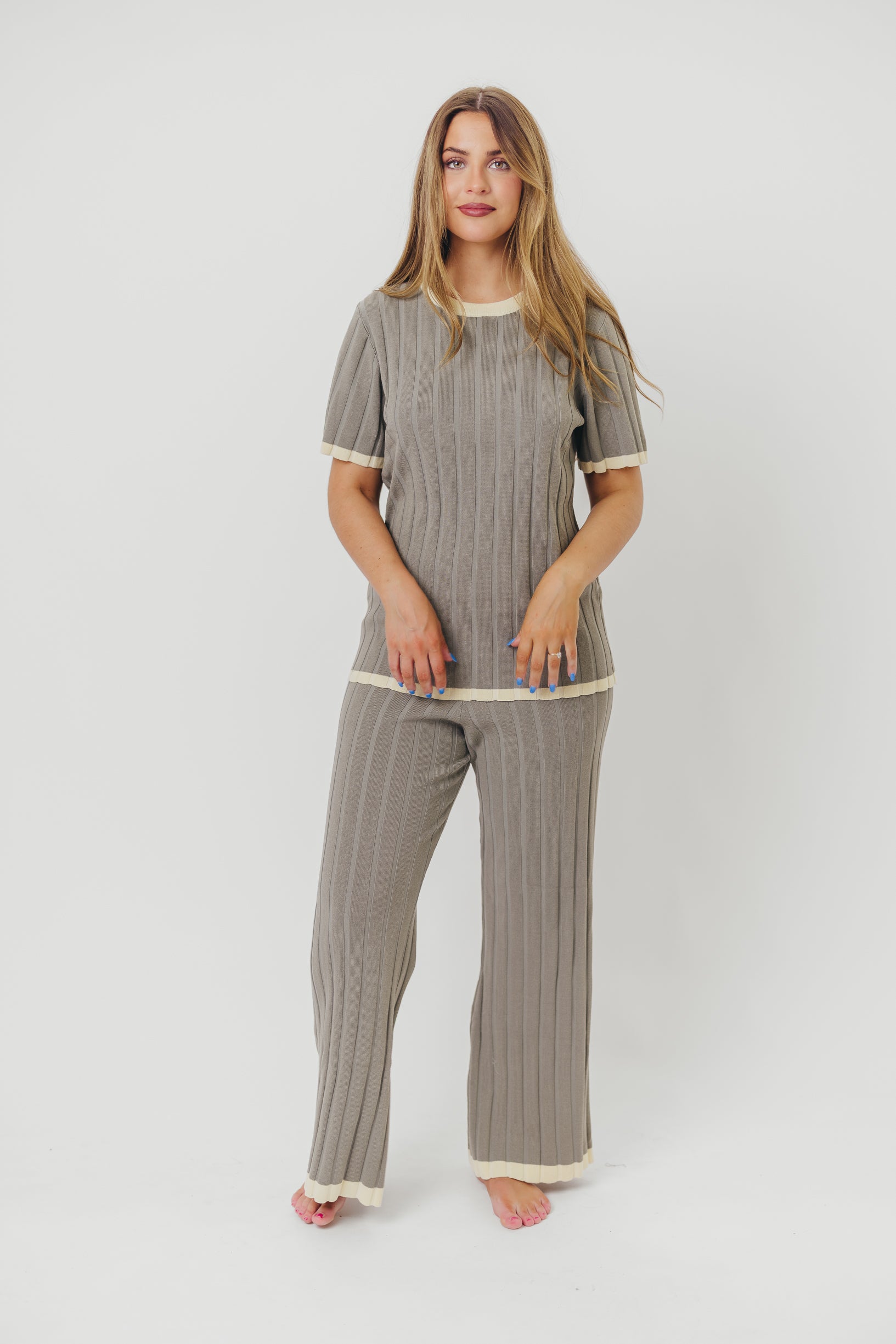 Adele Ribbed Knit Top and Pants Set in Dusty Olive *Final-Sale*