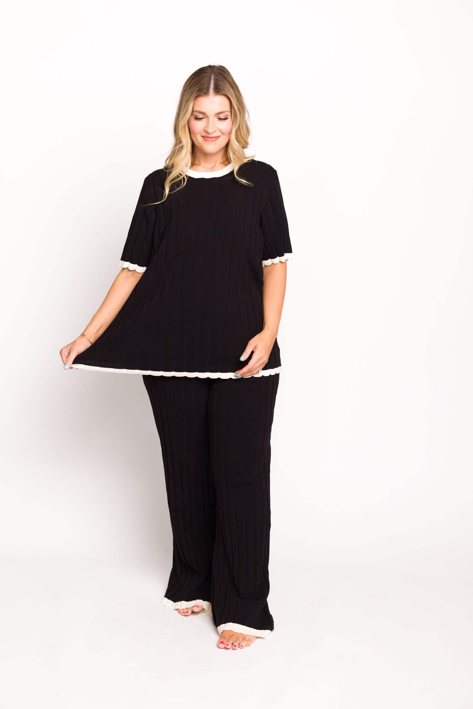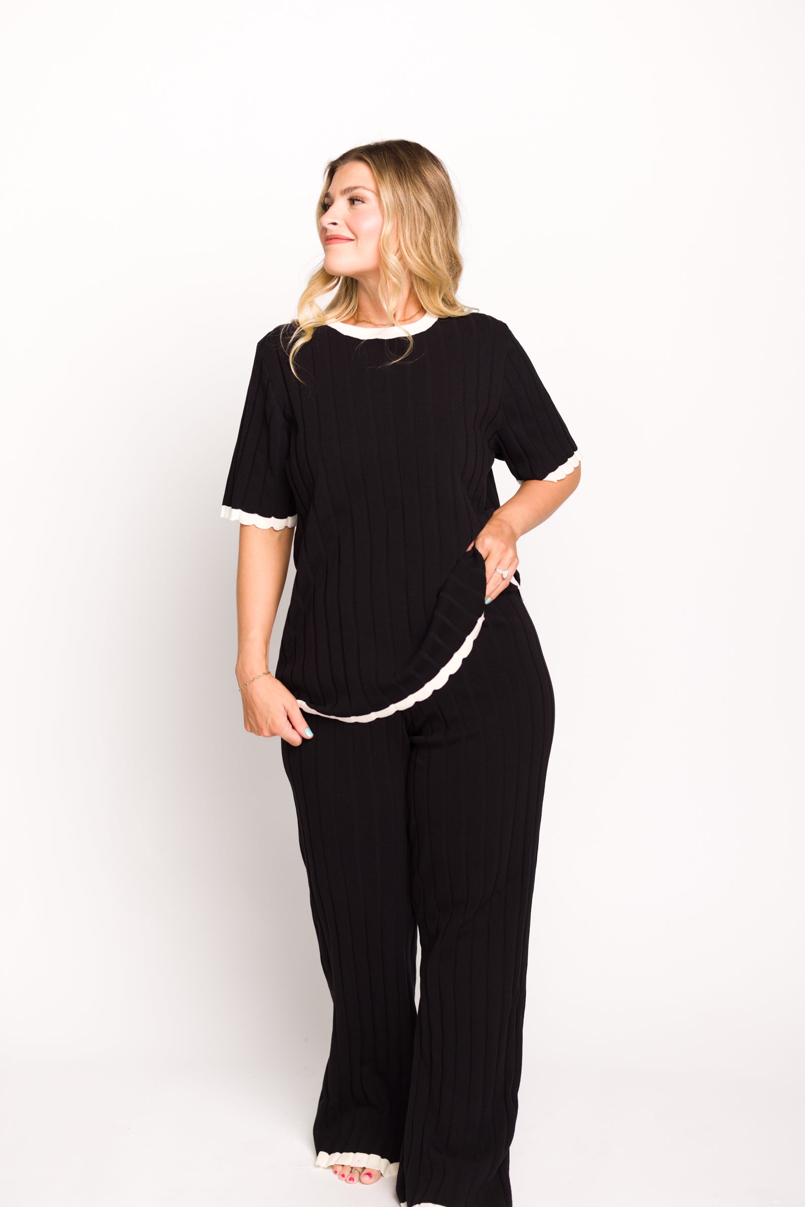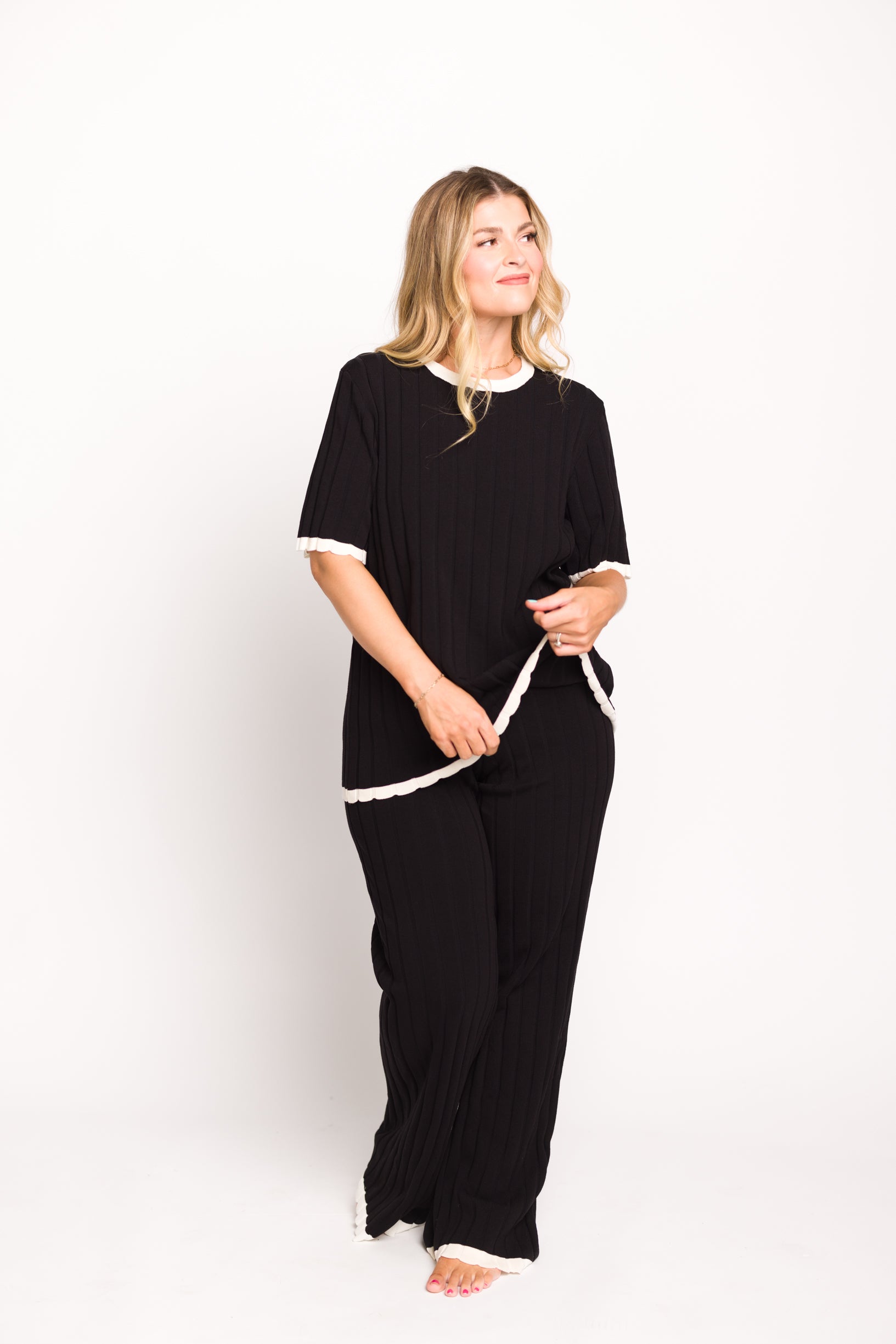 Adele Ribbed Knit Top and Pants Set in Black * Final-Sale*