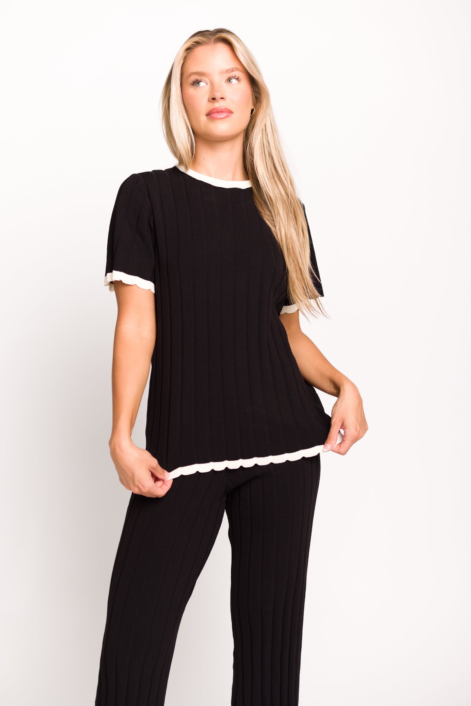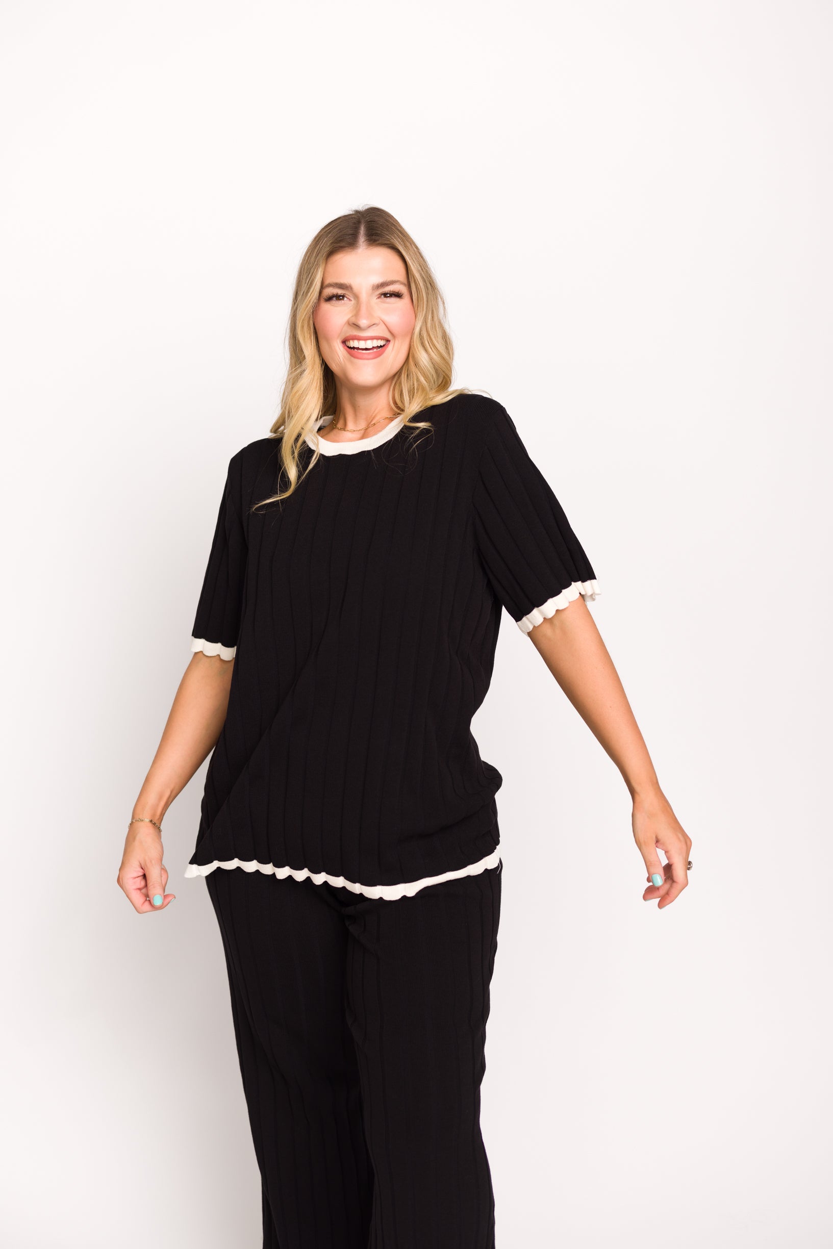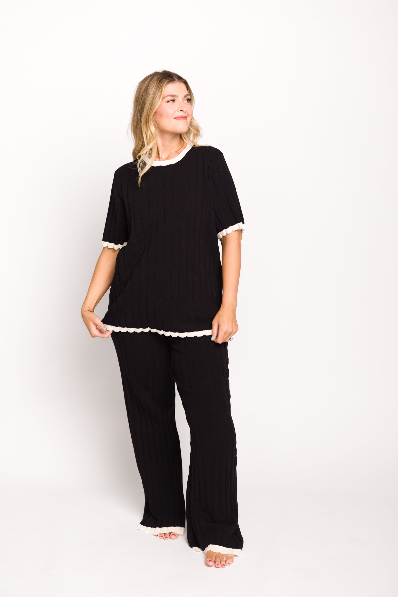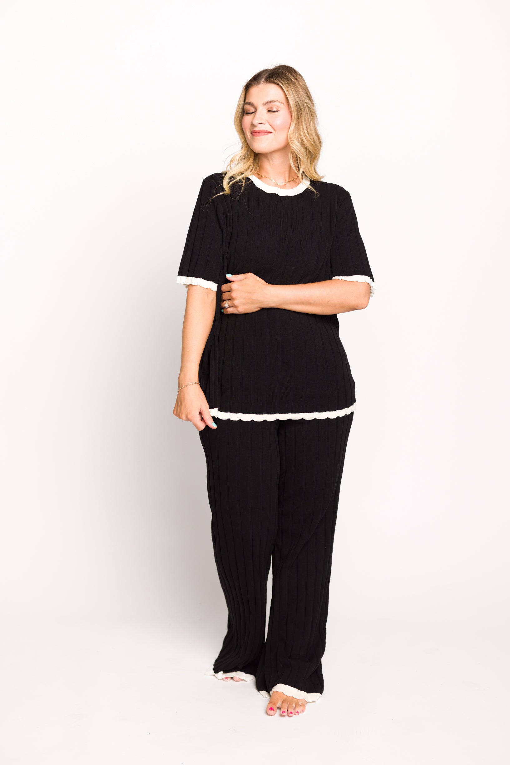 Adele Ribbed Knit Top and Pants Set in Black * Final-Sale*