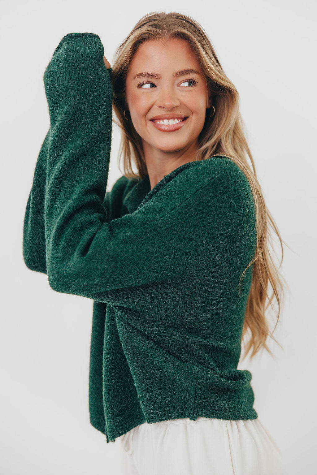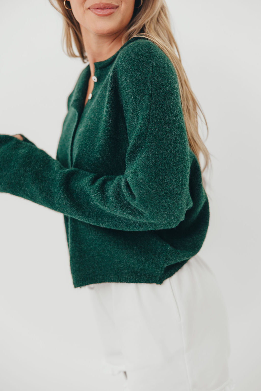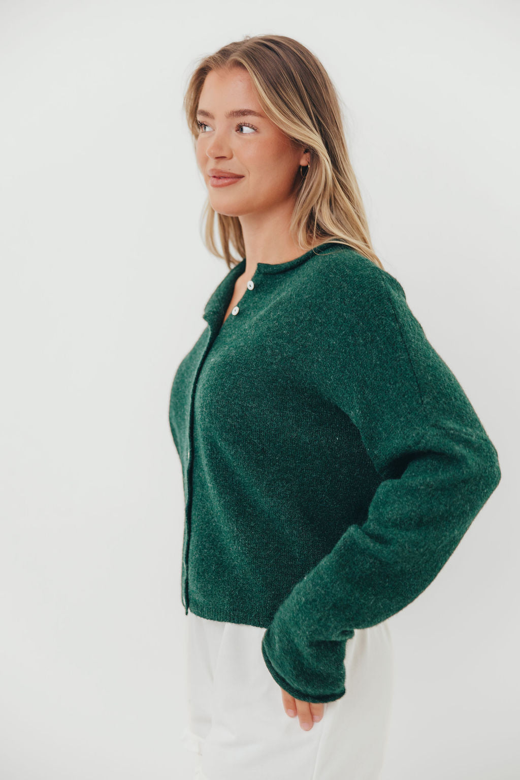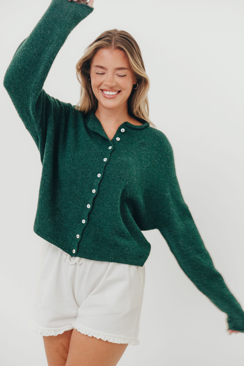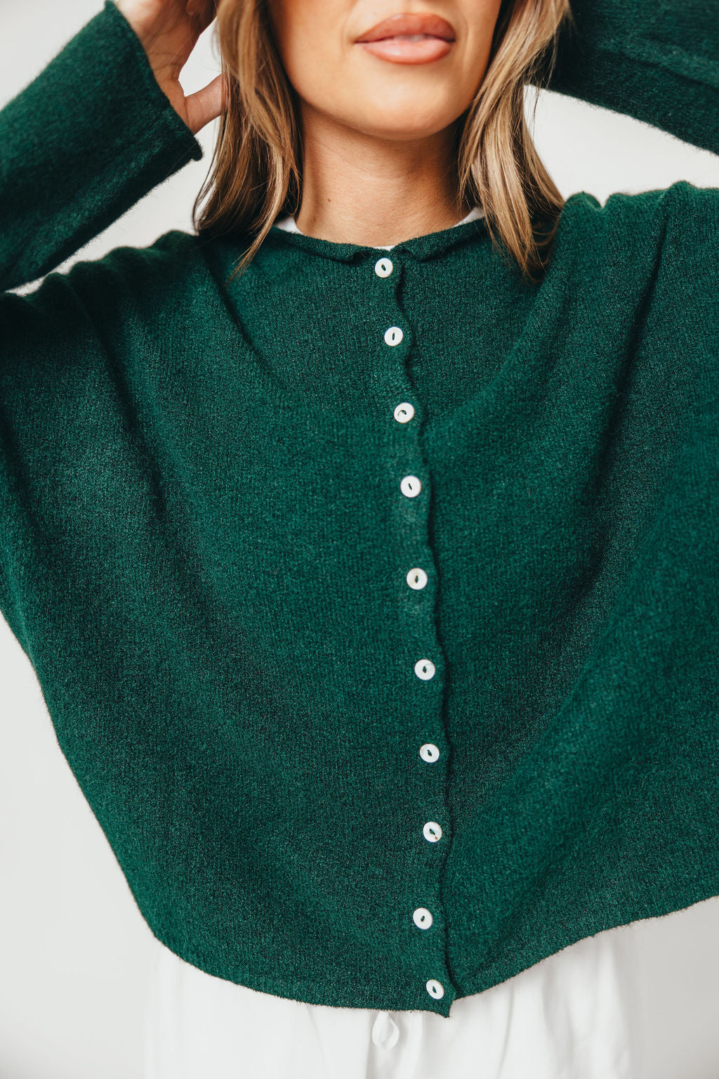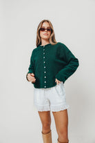 GARMENT DETAILS: Soft and feminine cardigan with long sleeves and rolled hem. Features dainty button front closure.