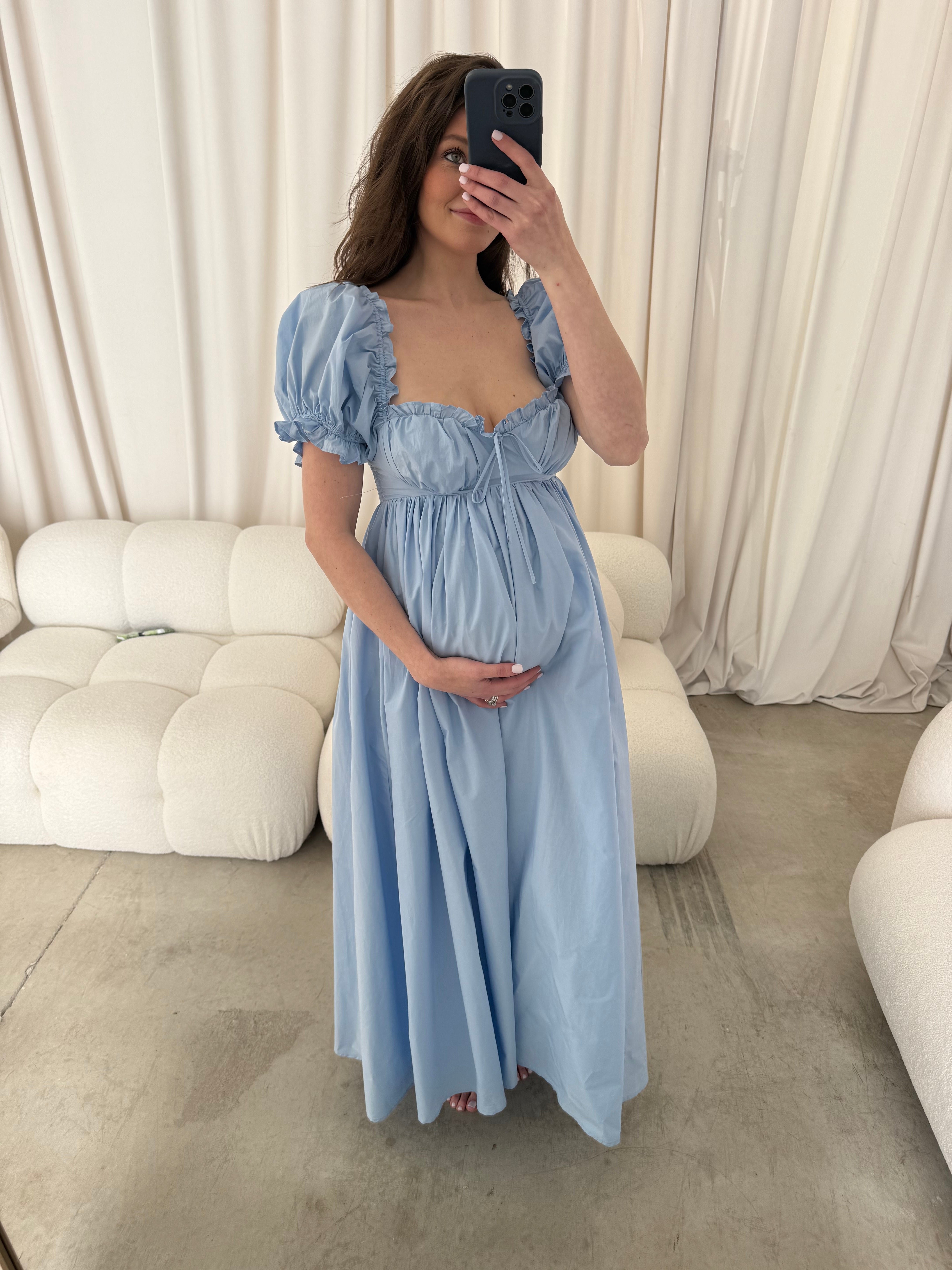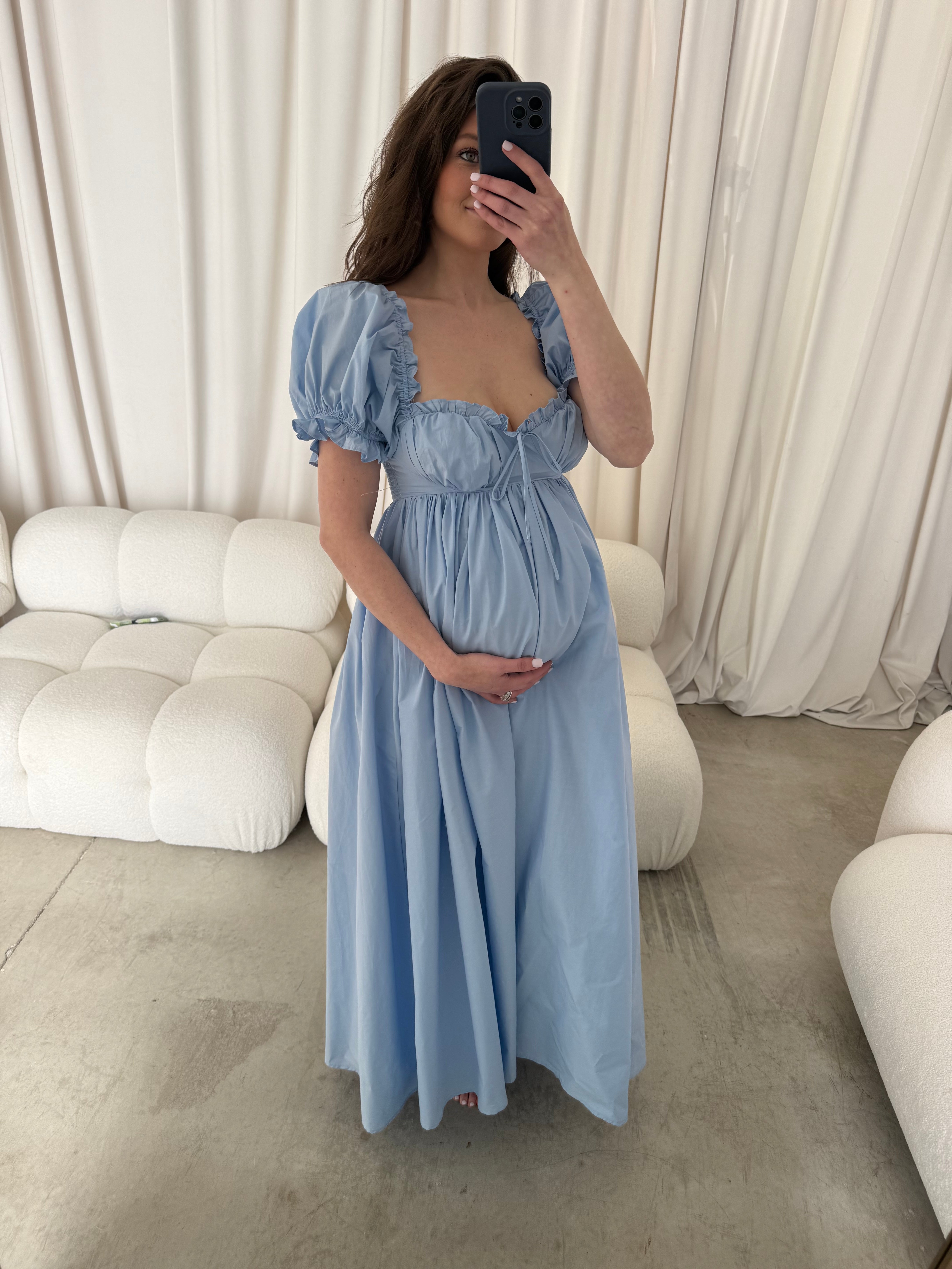 Olivia 100% Cotton Maxi Dress in Deep Blue - Bump Friendly