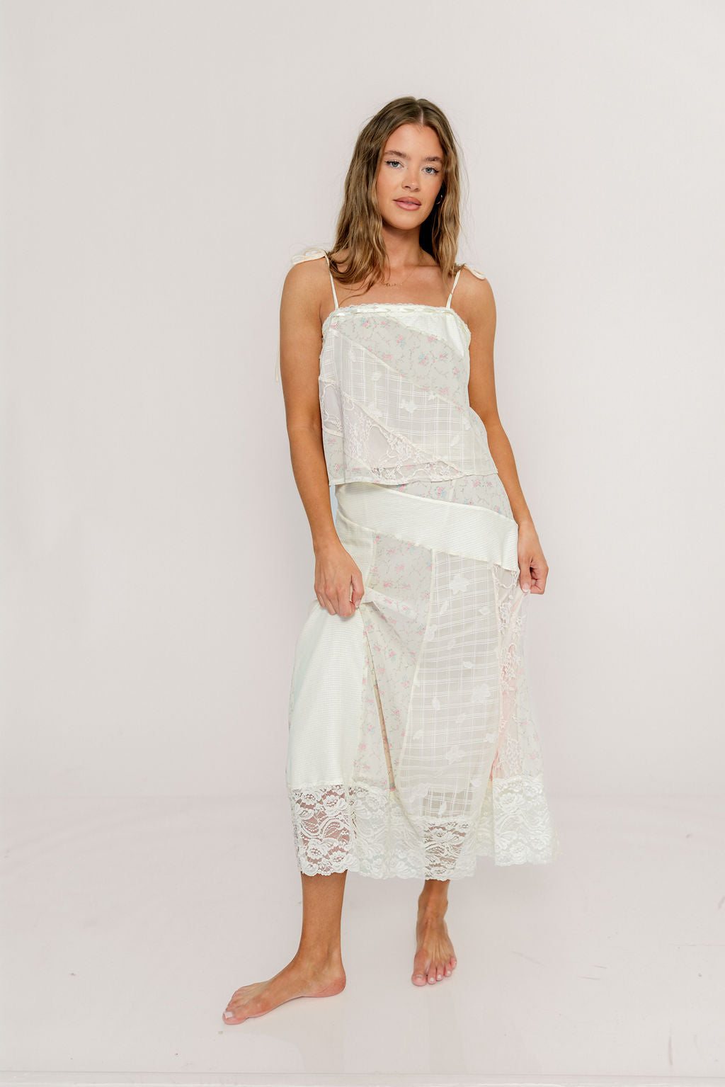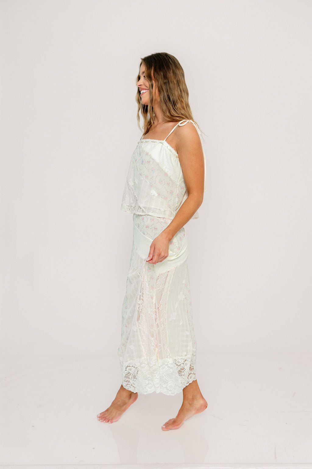 If you love the style of our gorgeous new Garner dresses but want a little more flexibility for styling, reach for the Kelsey and Merritt Floral Lace Set! This silky duo features delicate lace details and a feminine yet relaxed fit that easy for dressing up.