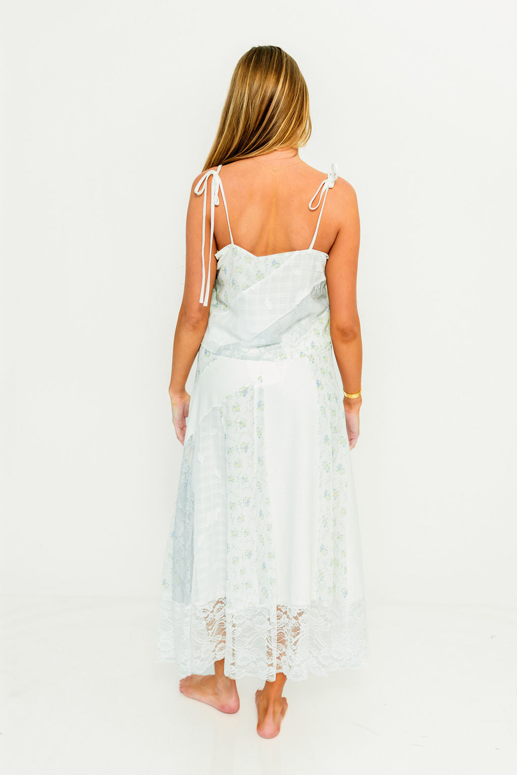 GARMENT DETAILS: Elegant floral print camisole top with square neckline, adjustable self-tie shoulder straps, and delicate lace details.