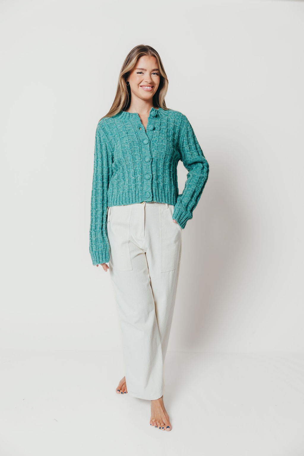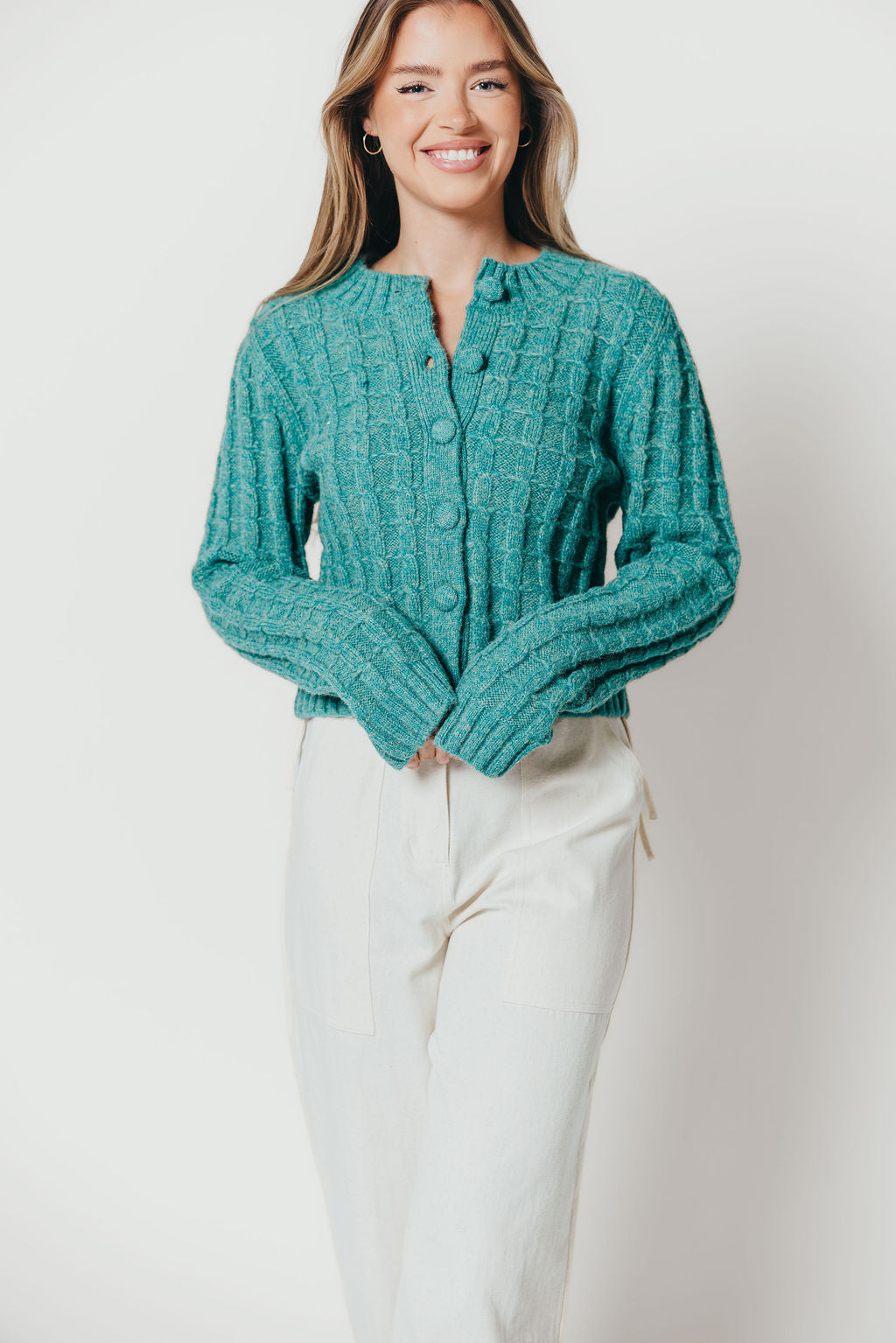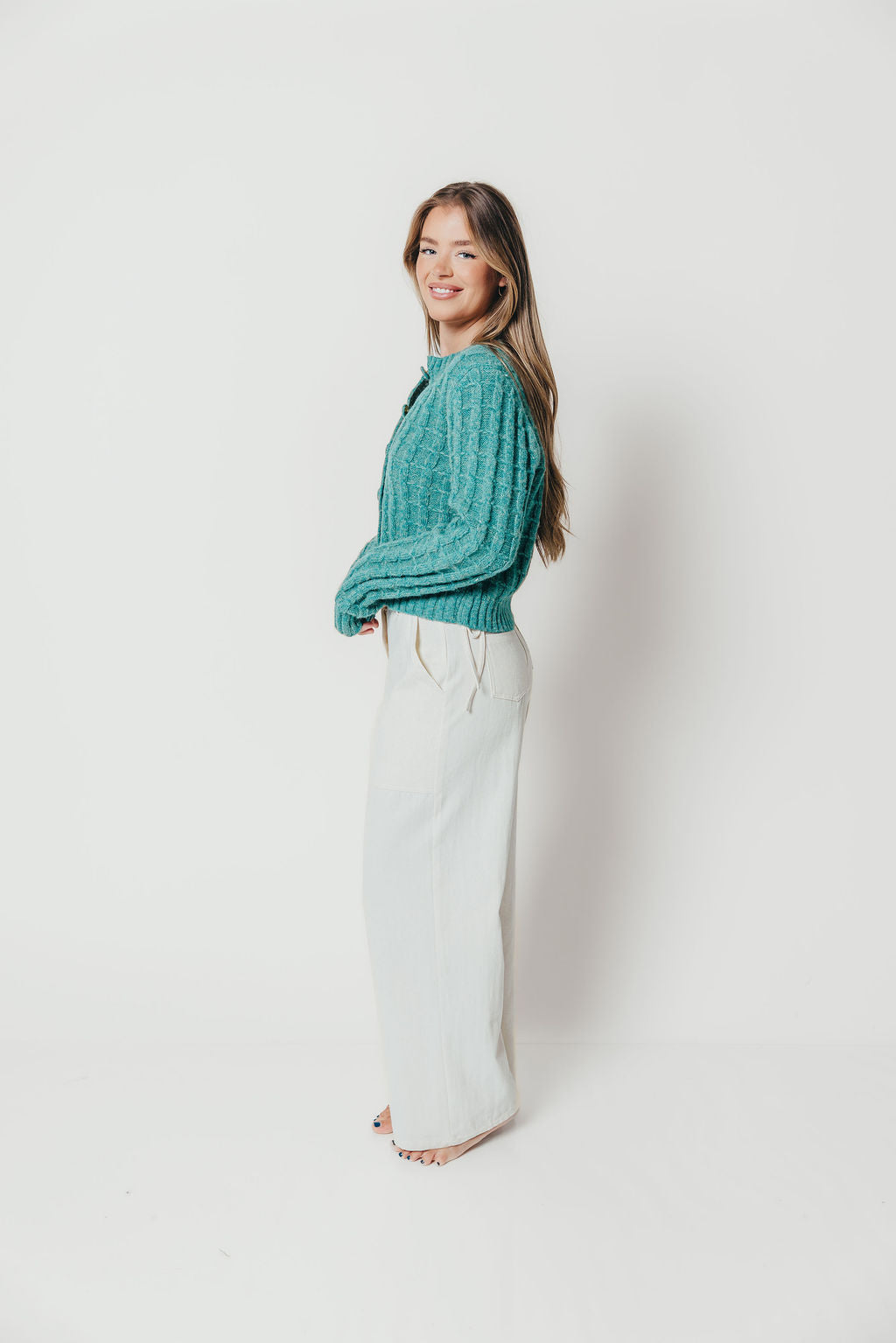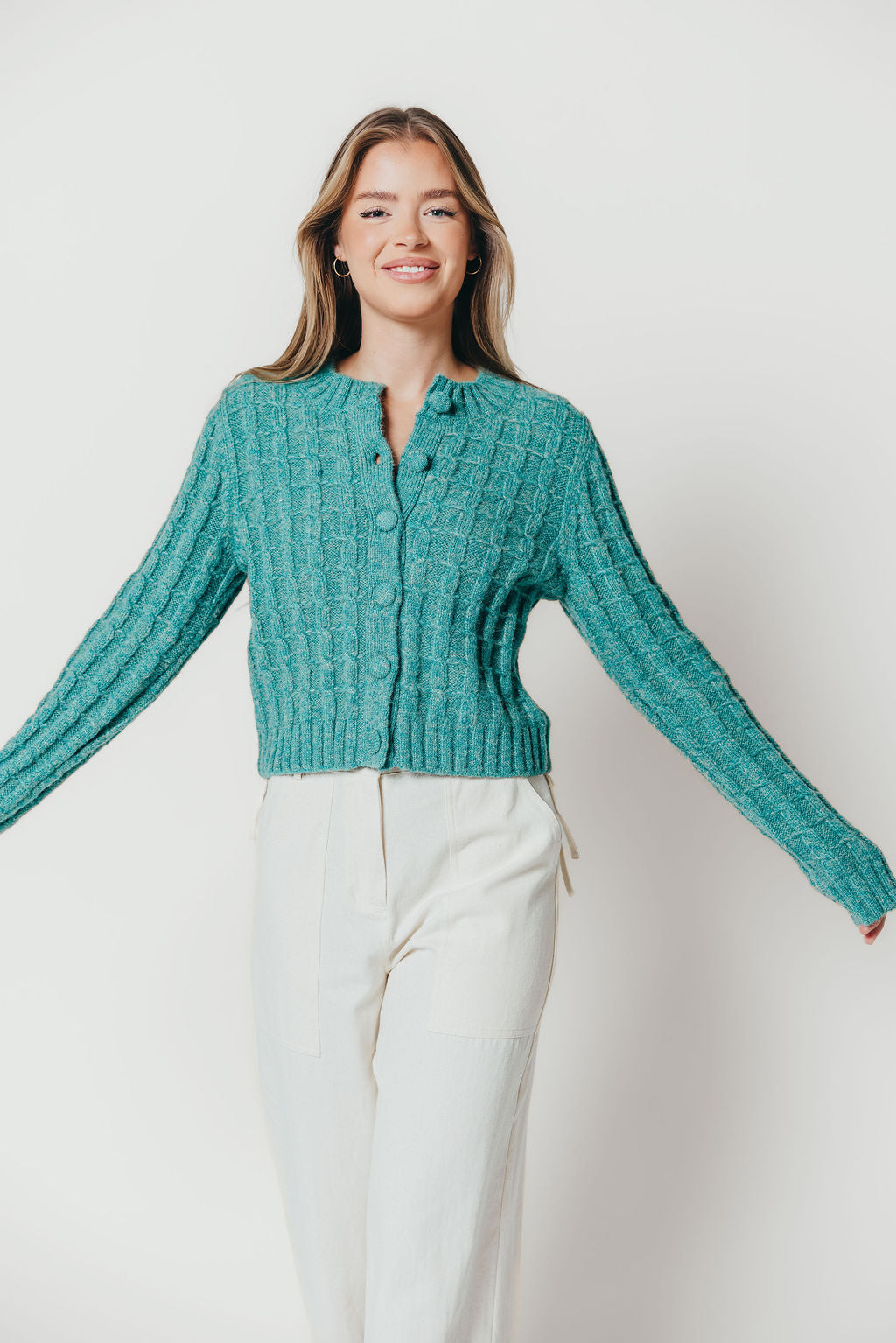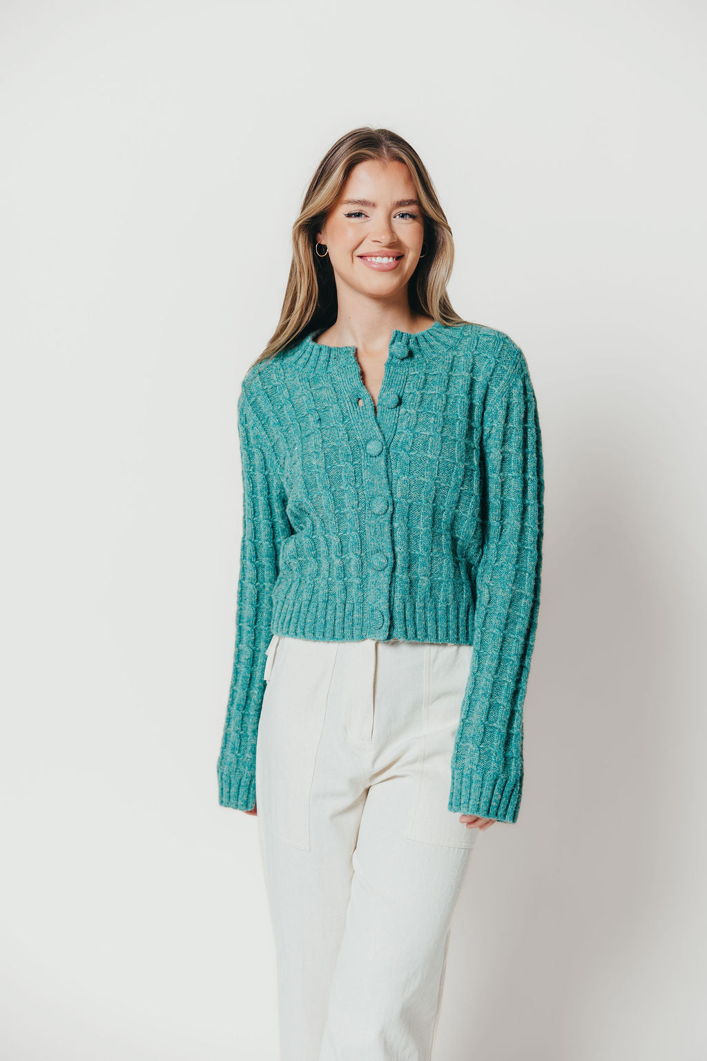 Adrienne Cable Knit Cardigan in Pine