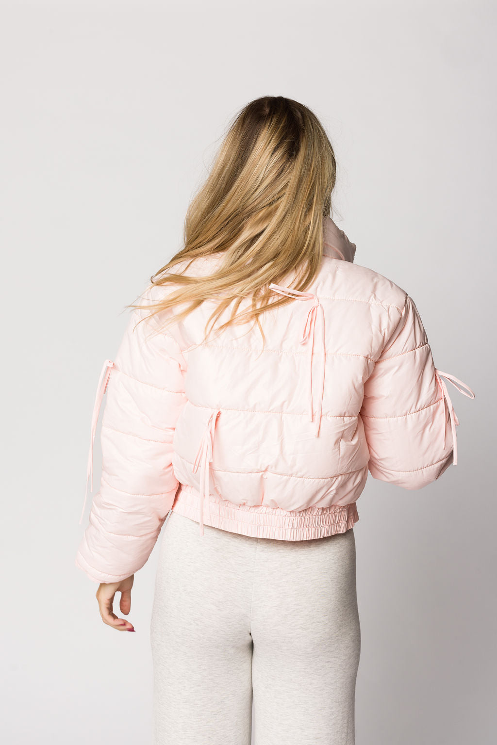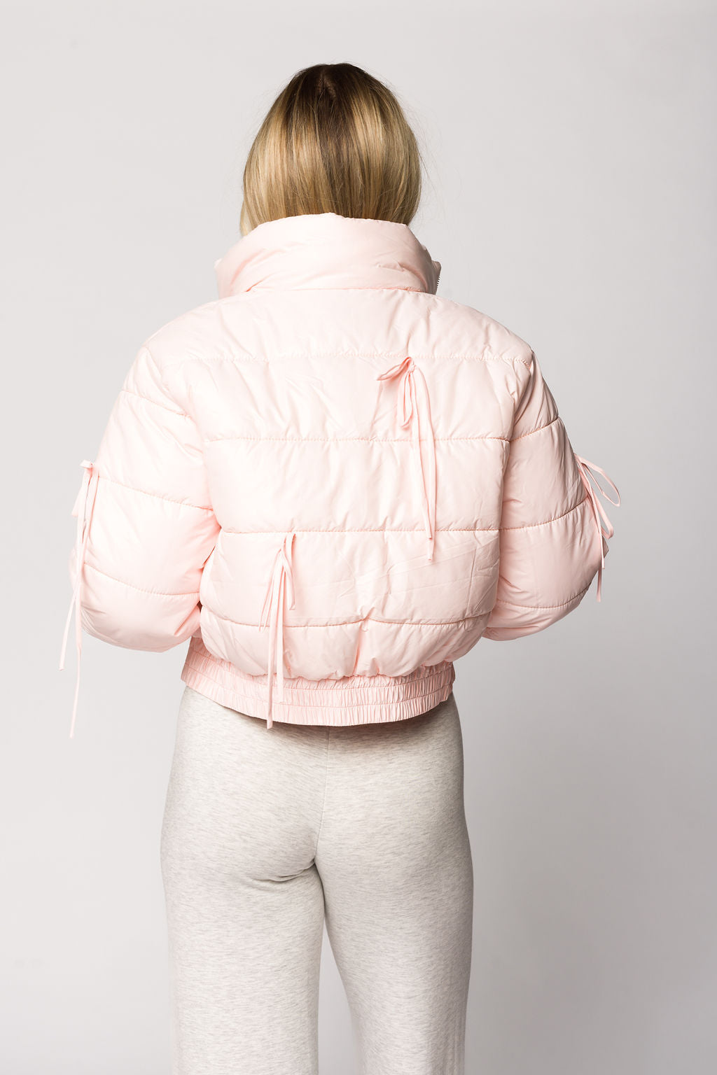 Eloise Ribbon Bow Puffer Jacket in Pink