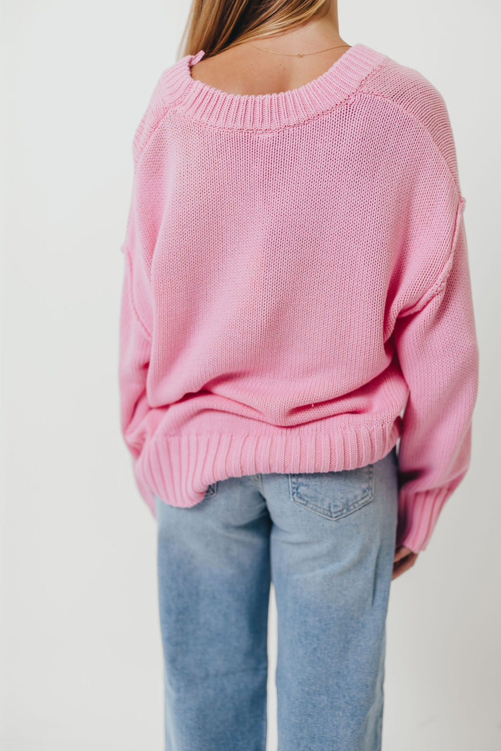Lola 100% Cotton Scoop Neck Drop Shoulder Knit Sweater in Pink
