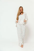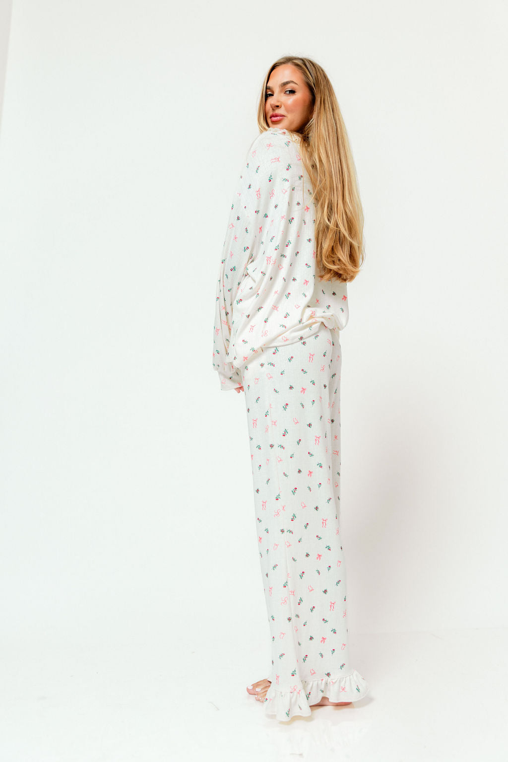 Get cozy and festive with the Carol Pointelle Pajama Set! With dainty ruffles and a charming print, these pajamas are ultra cozy and as cute to lounge in as they are comfortable!