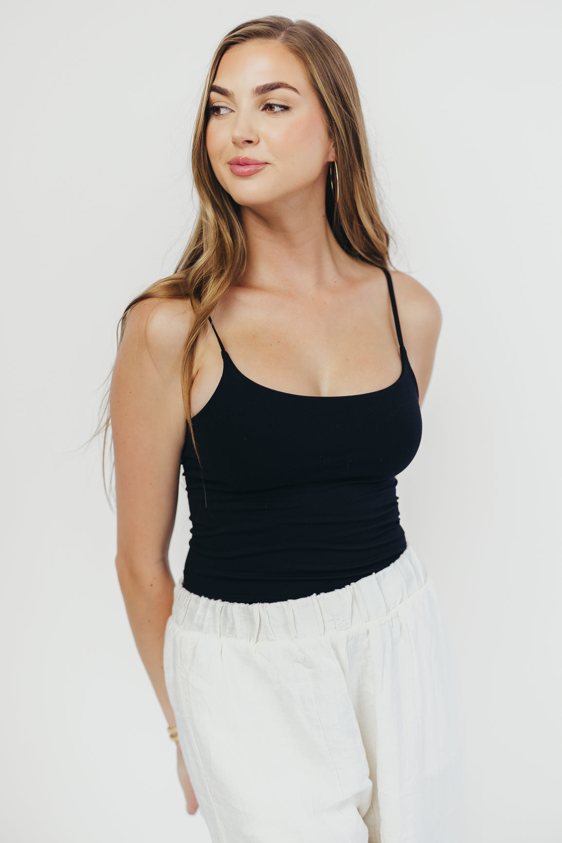 GARMENT DETAILS: Fitted, sculpted bodysuit with spaghetti straps and snap button closure and double-layered, seamless construction.