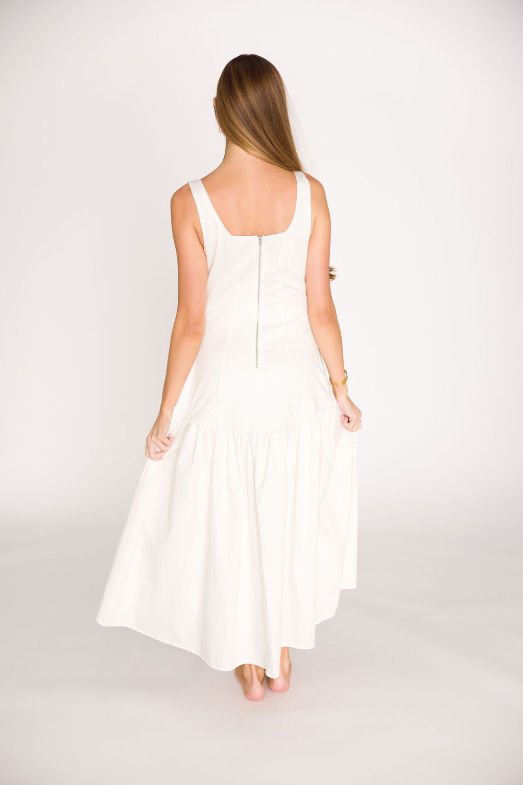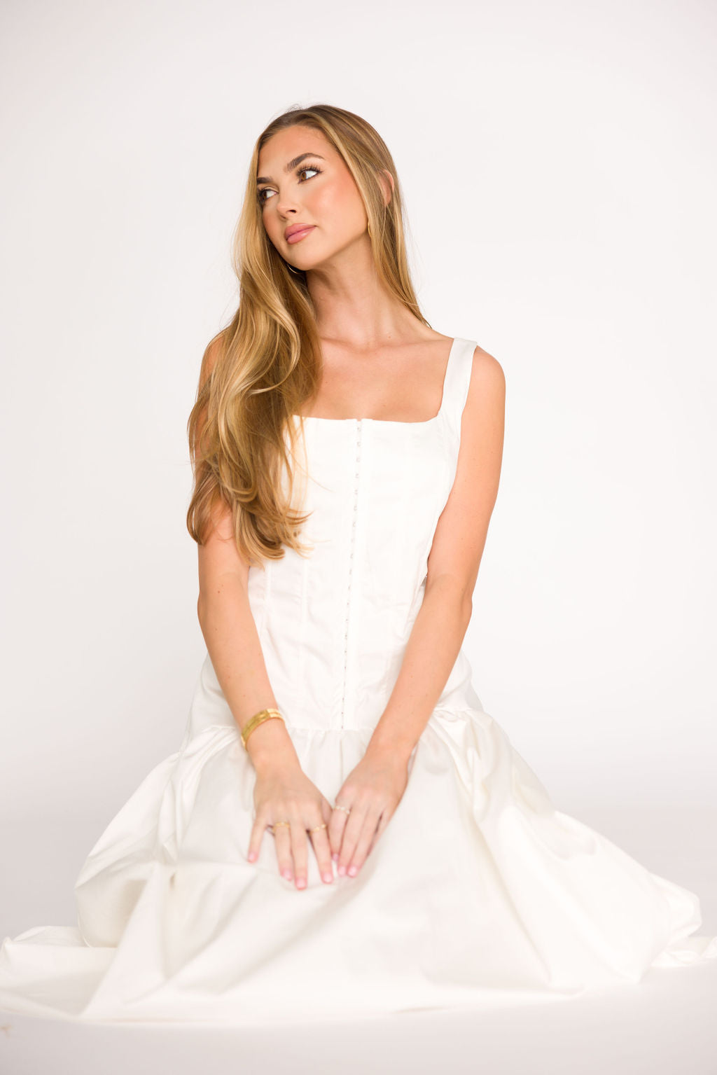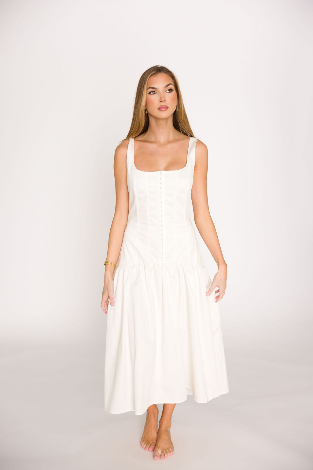 Violet Corset Style Drop Waist Midi Dress in Off-White *Final-Sale*