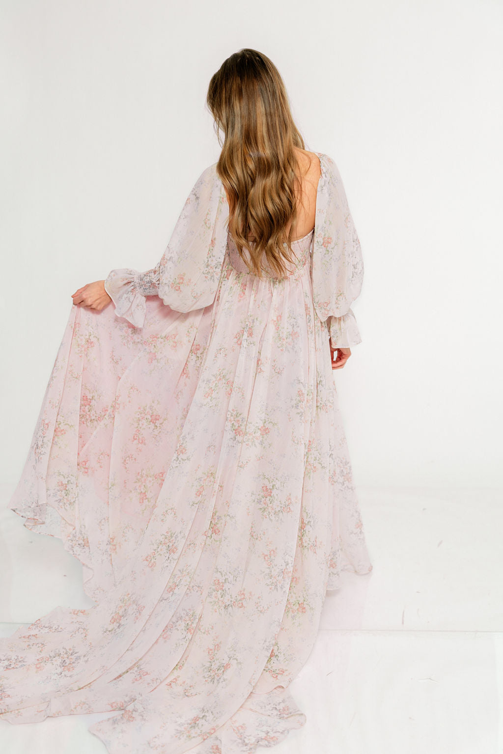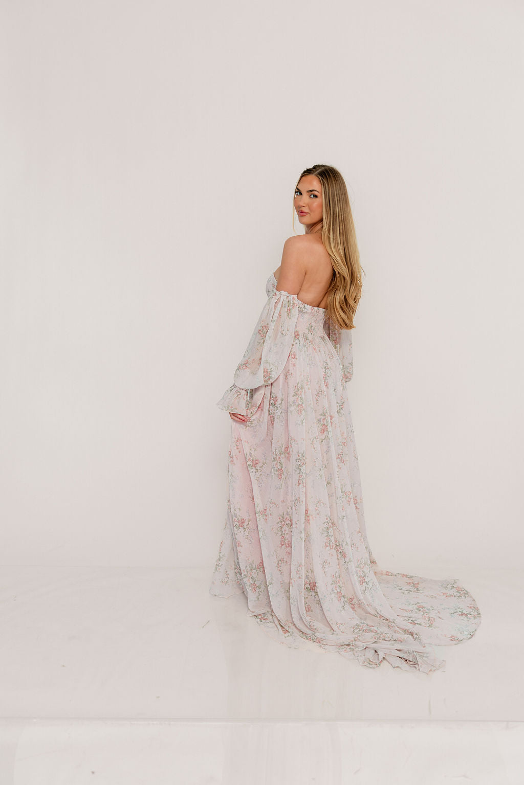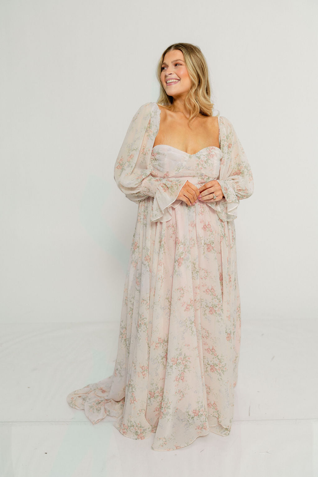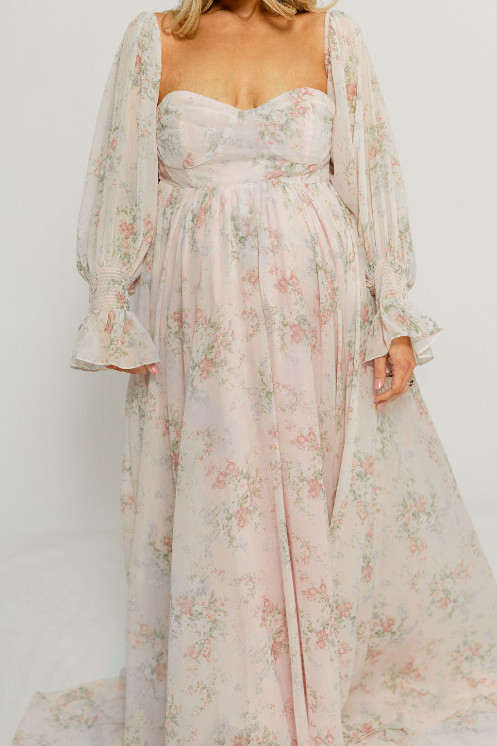 Delilah Maxi Dress with Train in Muted Blush Floral - Bump Friendly