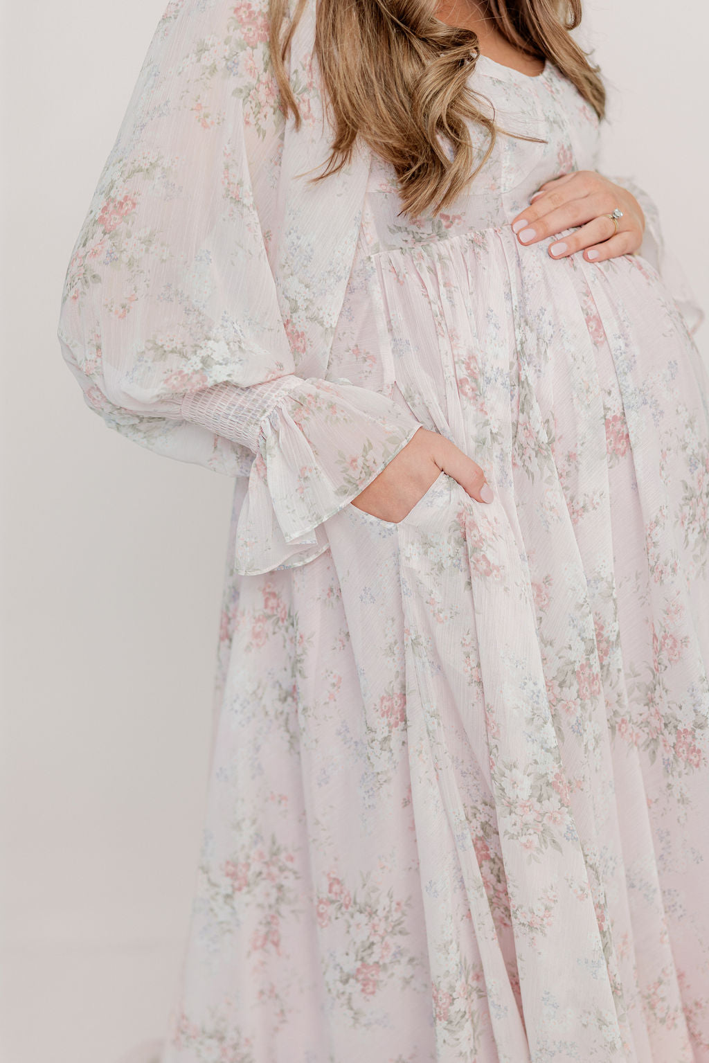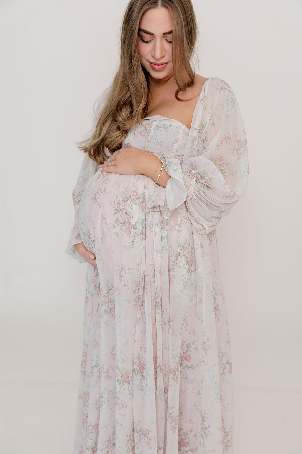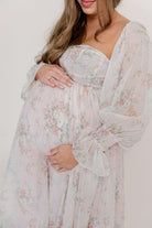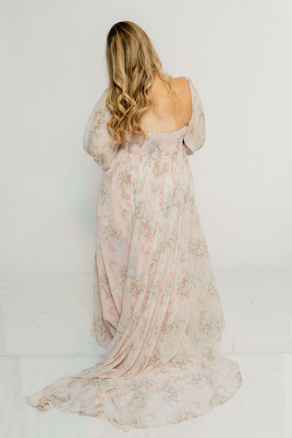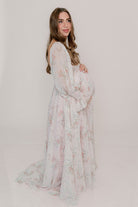 Delilah Maxi Dress with Train in Muted Blush Floral - Bump Friendly