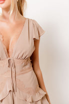 Jessa Tiered Ruffle Midi Dress in Mocha