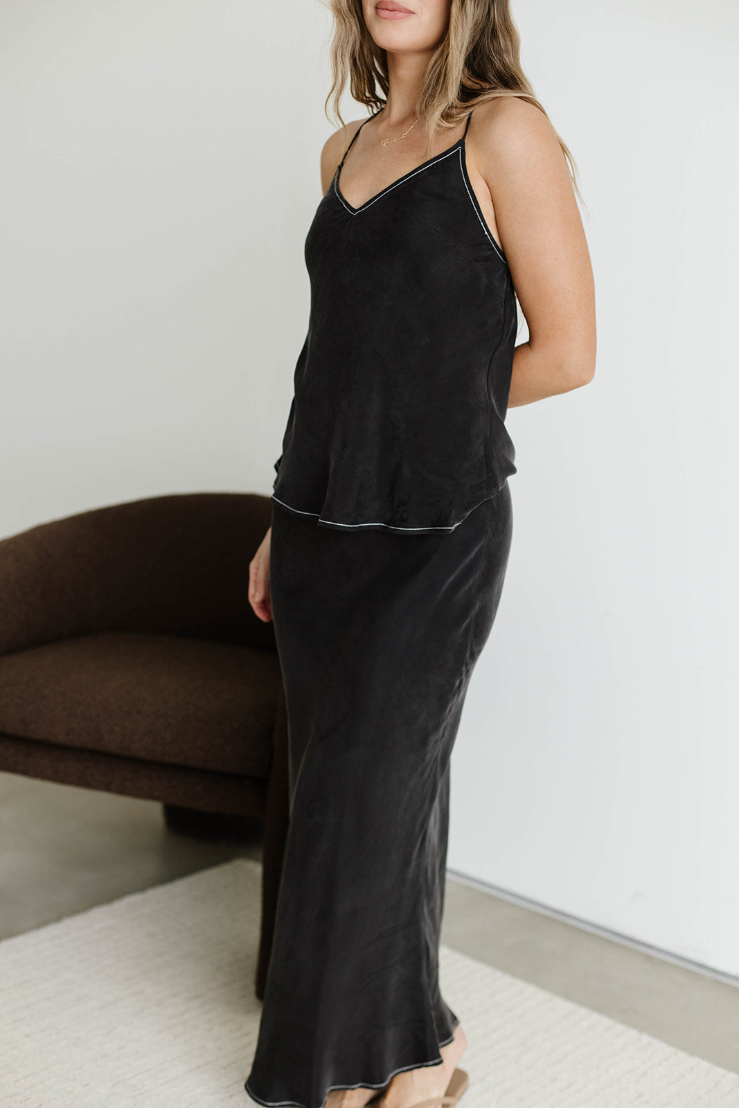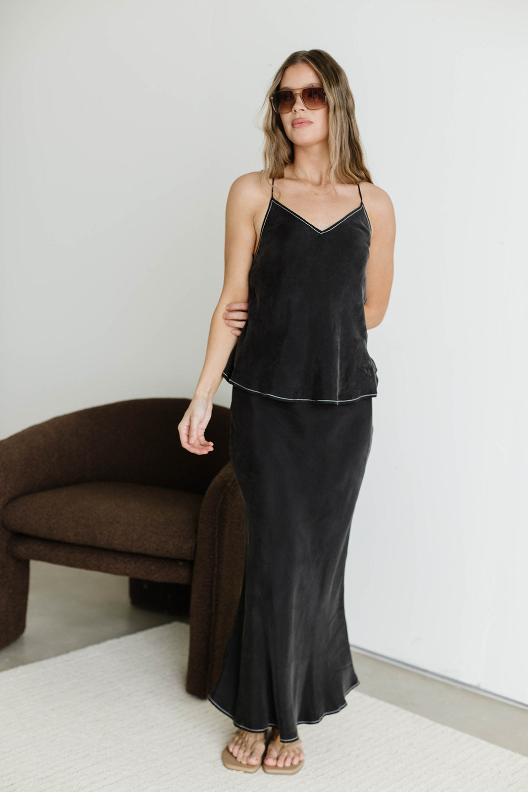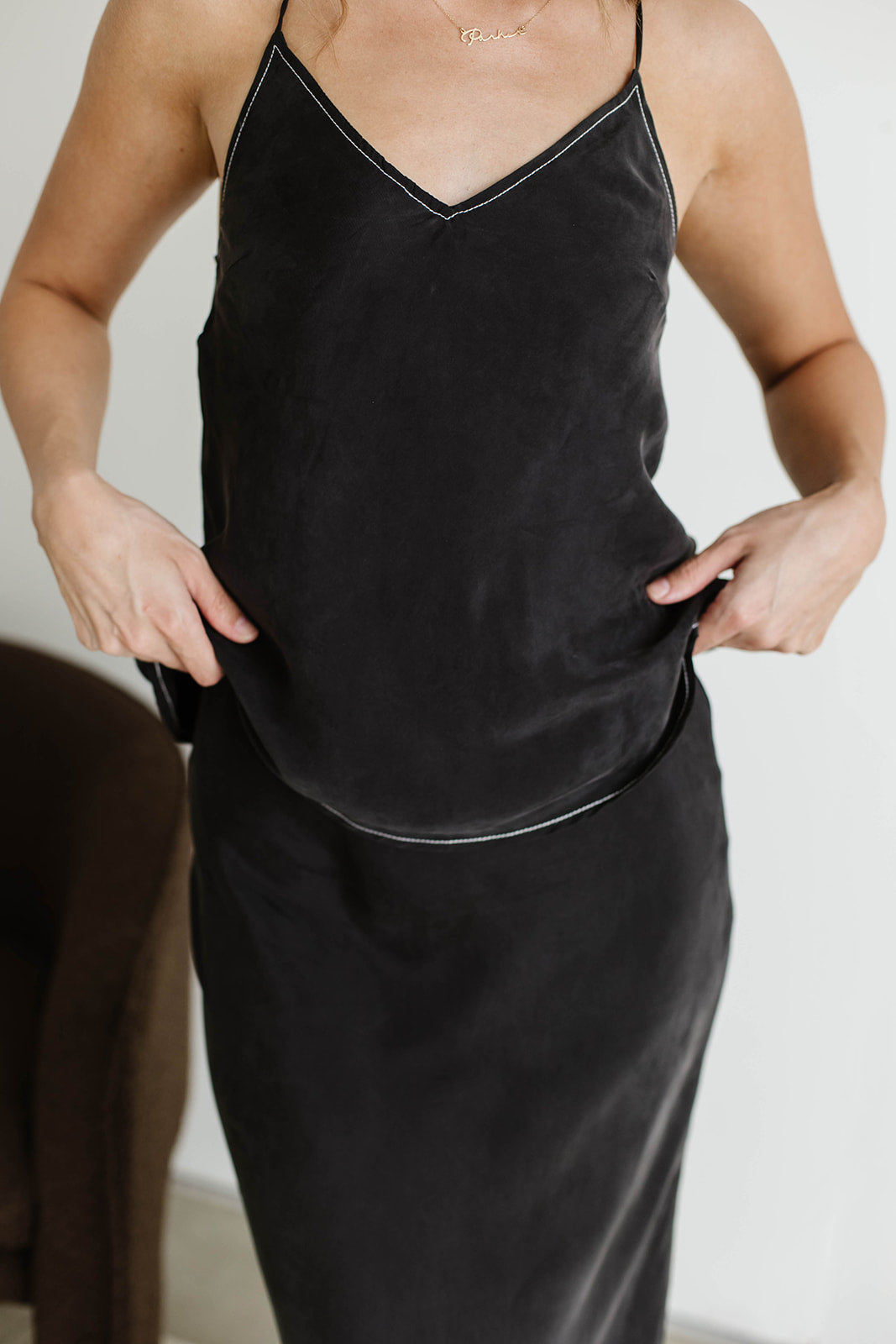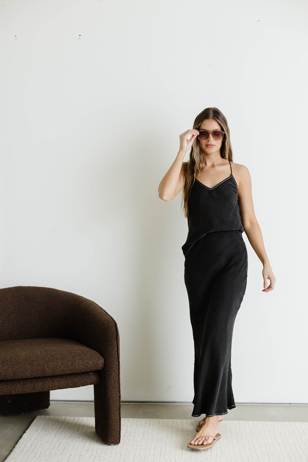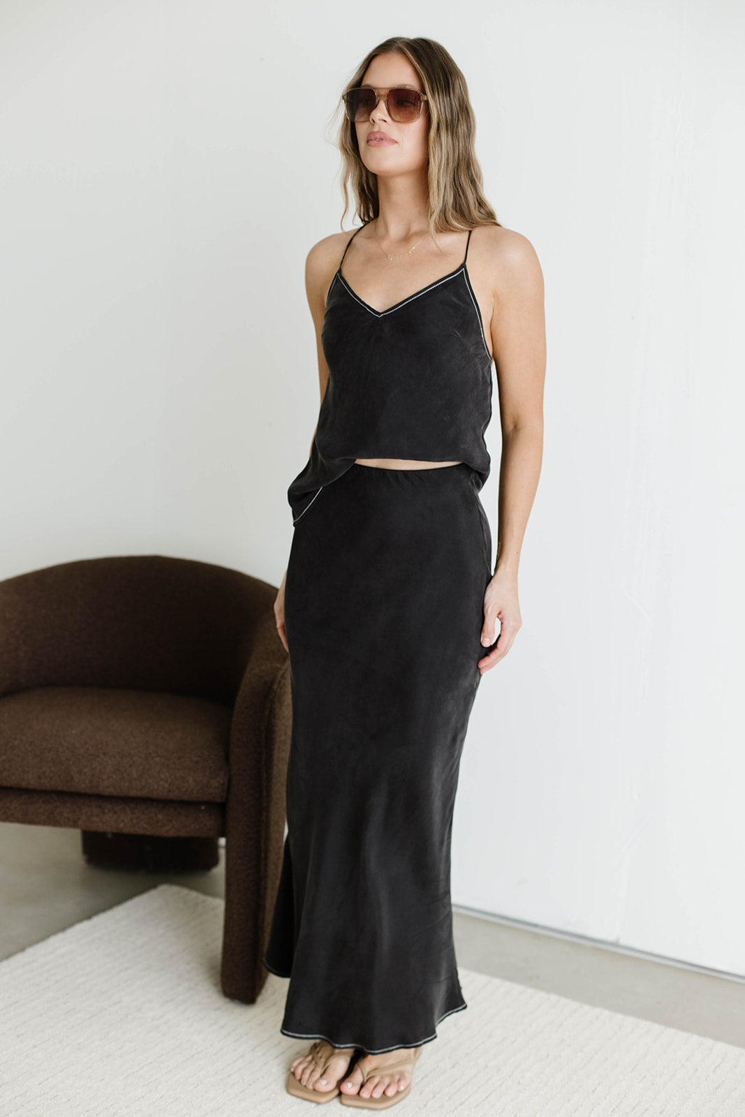 We've found the best skirt set of the season! The Romana Set features a gorgeous fabric paired with a sophisticated silhouette--what more could we want?! Its sexy camisole top pairs perfectly with a feminine midi skirt, complete with a playful flounced hem. Style with mules or sandals depending on your mood!