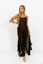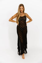 Fall in love with the Starla Lace Maxi! This lacy gown offers a sexy transparent style, with a ruffled hem and comfortable silhouette that you can style over swimwear or for a particularly special evening out!