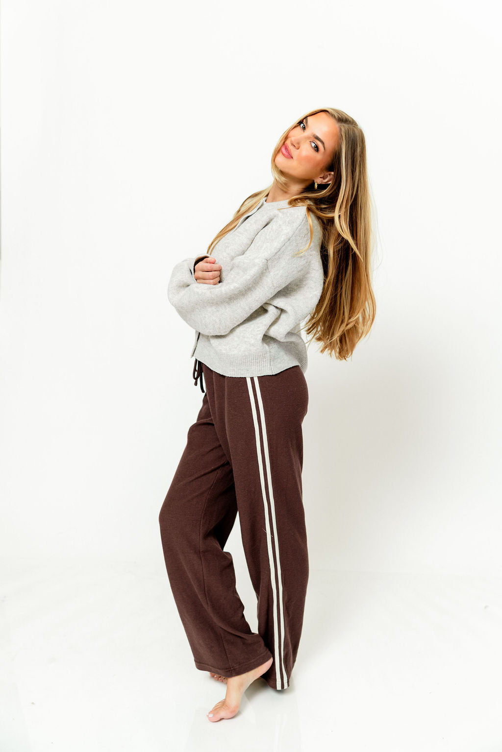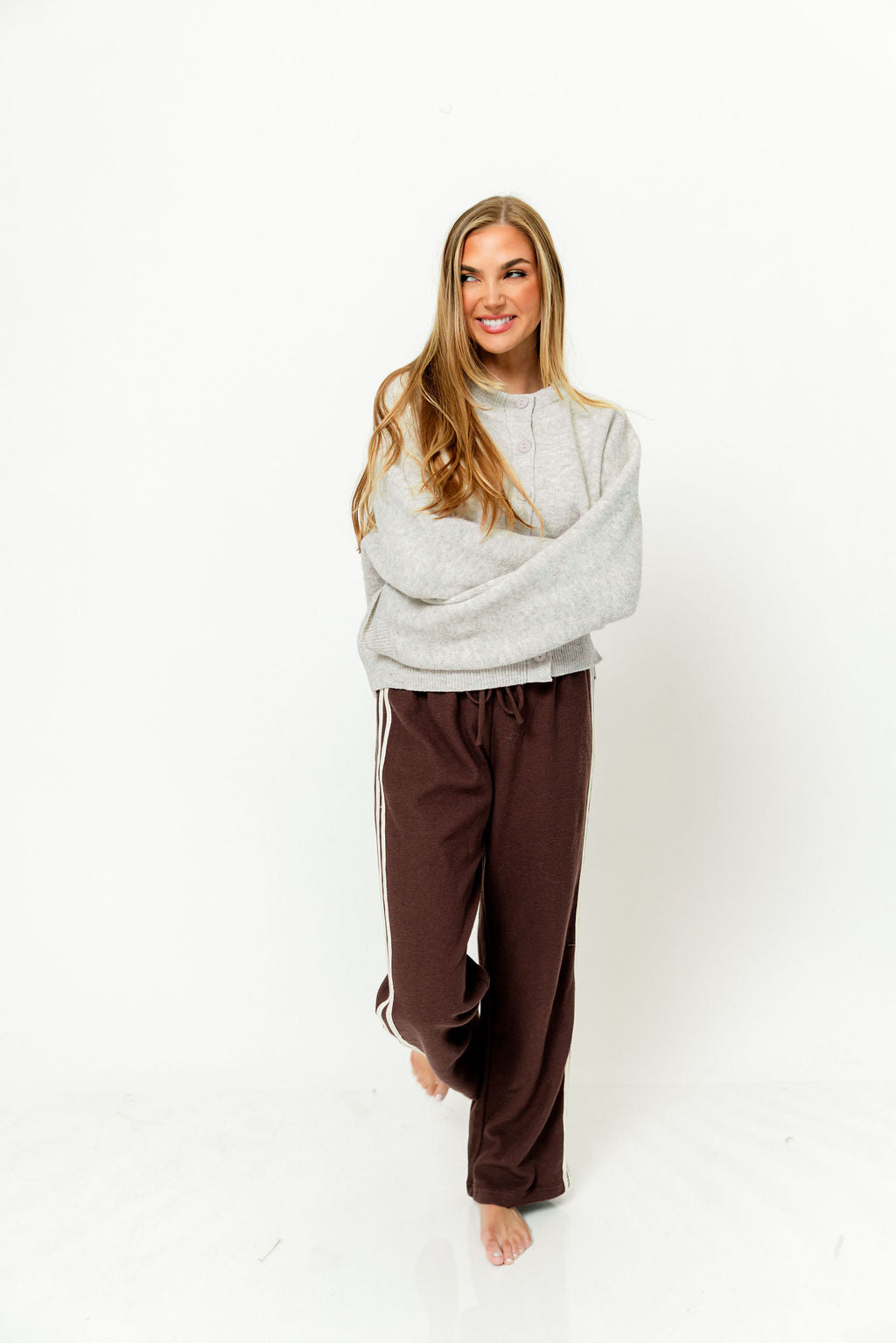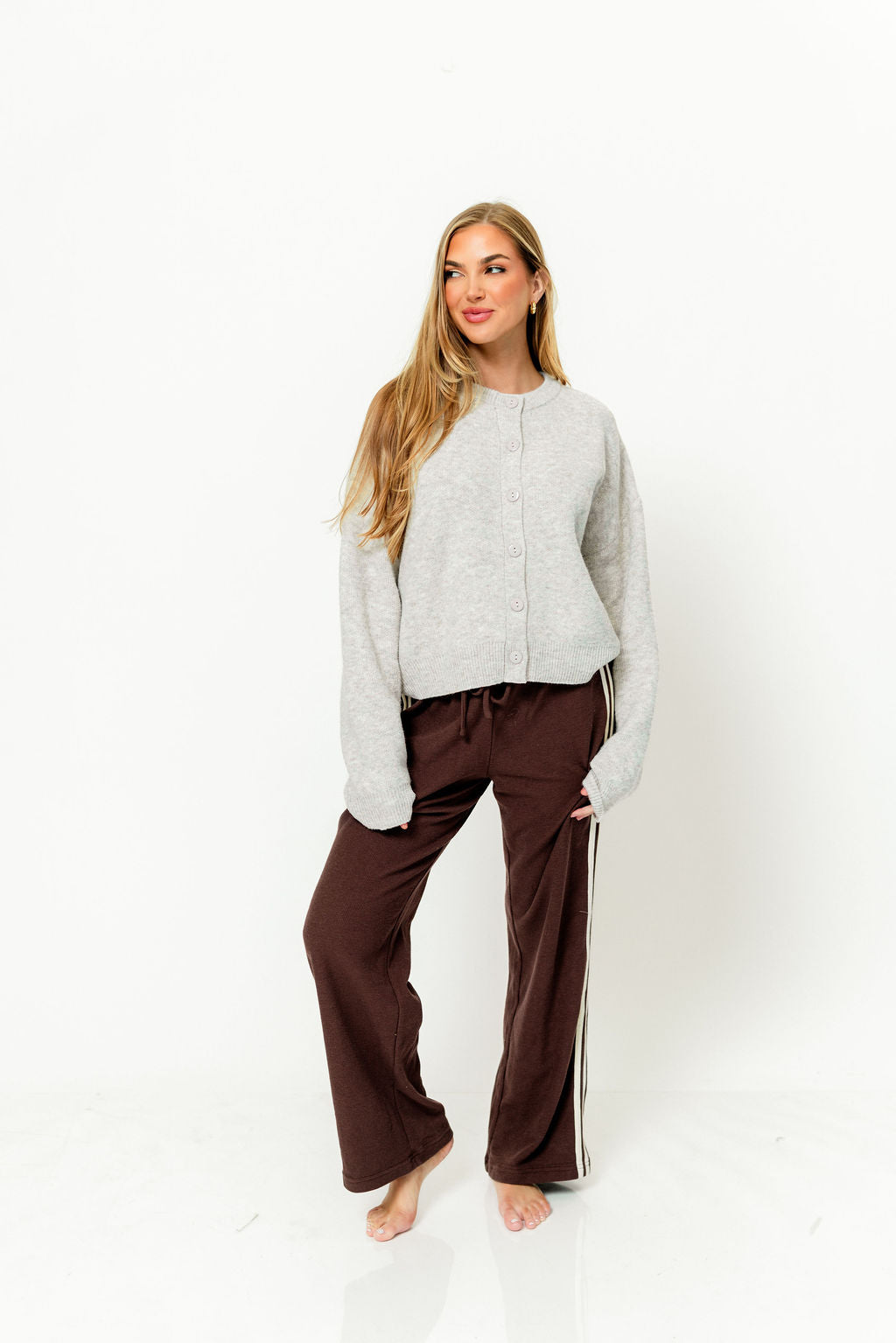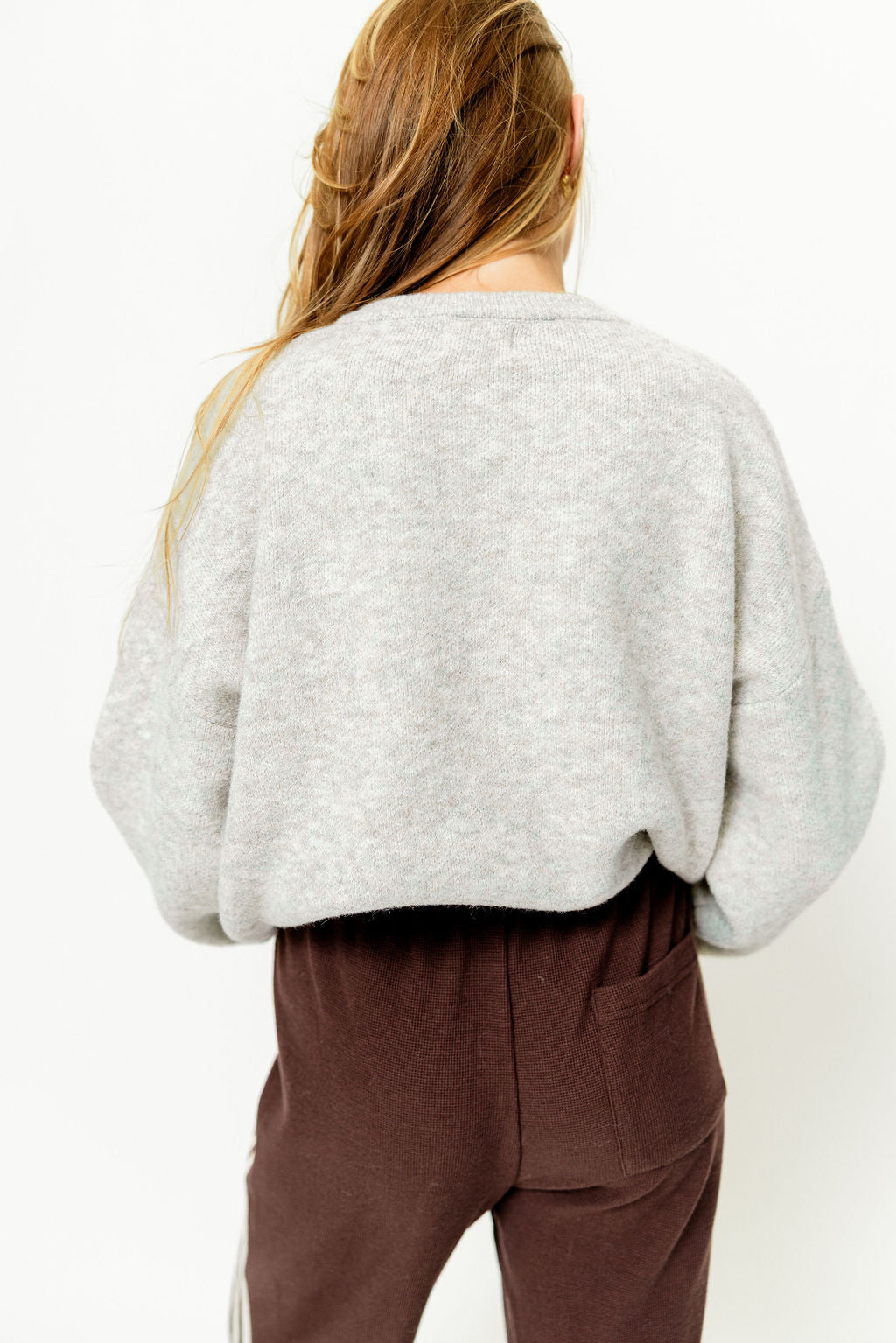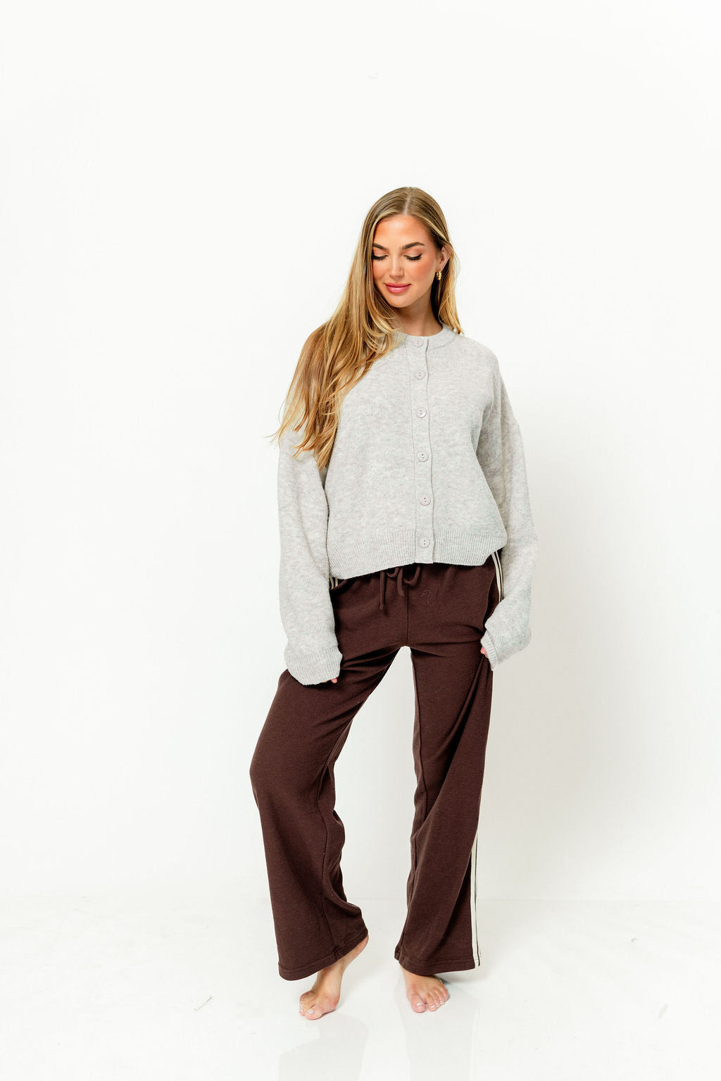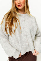 GARMENT DETAILS: Cozy knit cardigan, with rounded neckline, dropped shoulders, and long sleeves. Features front button placket and gentle crop.