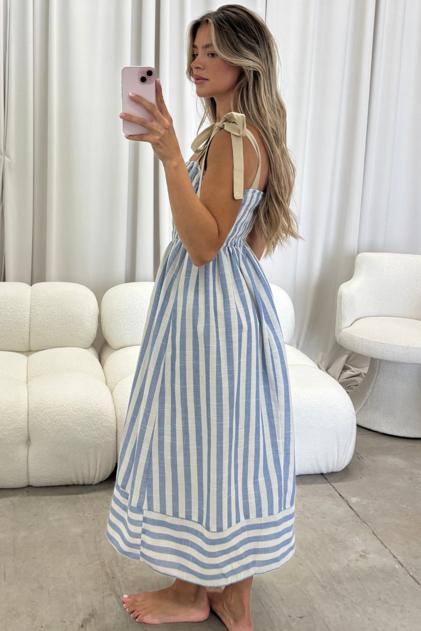 Aracely Striped Midi Dress in Blue