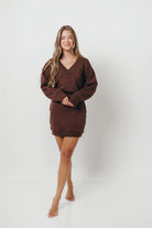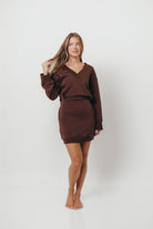 Sansa Butter Modal V-Neck Ribbed Contrast Mini Dress in Cocoa