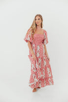The CariDee Maxi is such a beautiful addition to your closet--we're honestly in love with this one. This premium gown offers a breathable 100% cotton shell, with a smocked bodice and short puffed sleeves; it's the perfect celebration dress thanks to its floral design and flattering silhouette.
