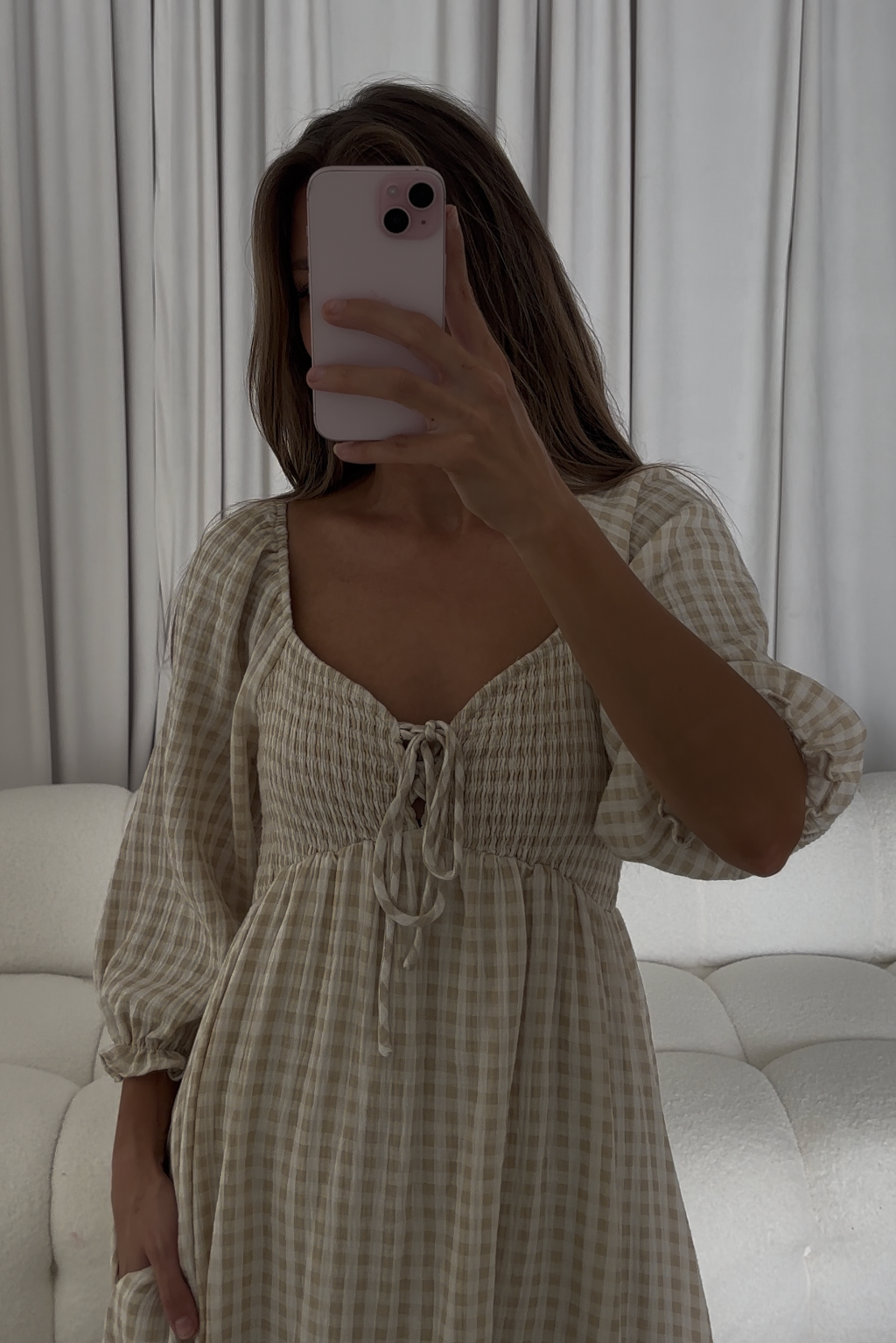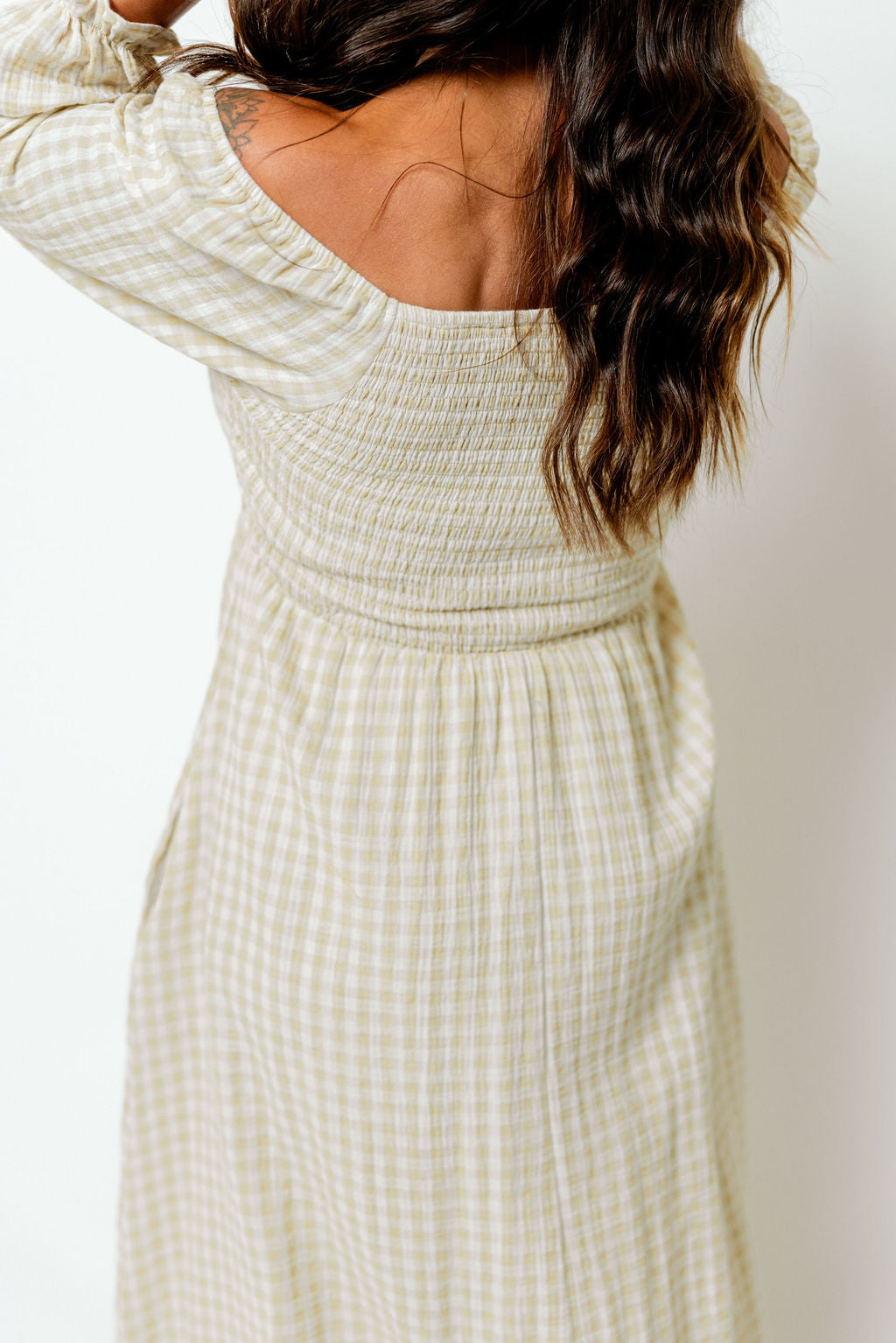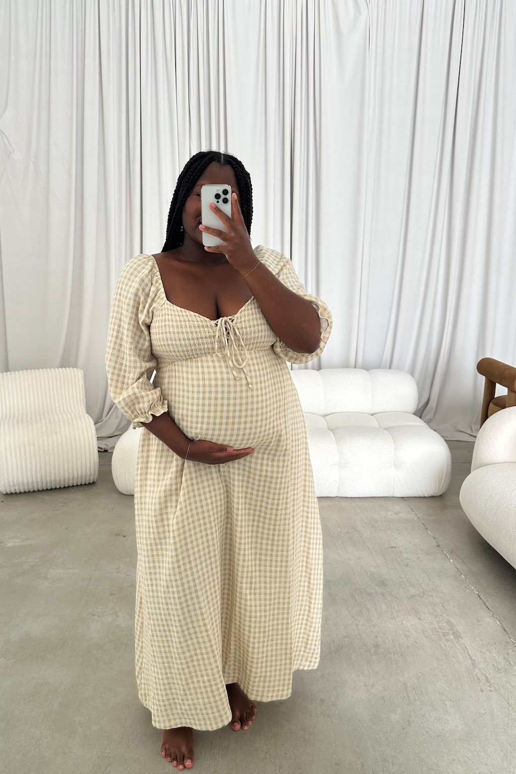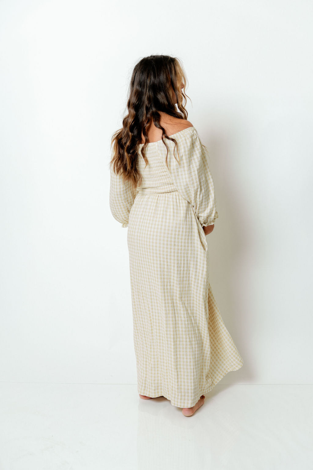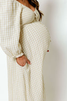 Cecilia 100% Cotton Smocked Maxi Dress in Muted Gold Plaid - Bump Friendly *10/29 PRE-ORDER*