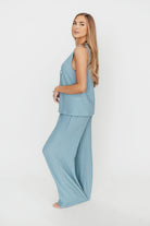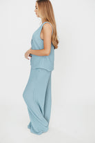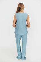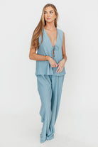 Cerena Vest Tie Top and Pants Set in Dusty Blue