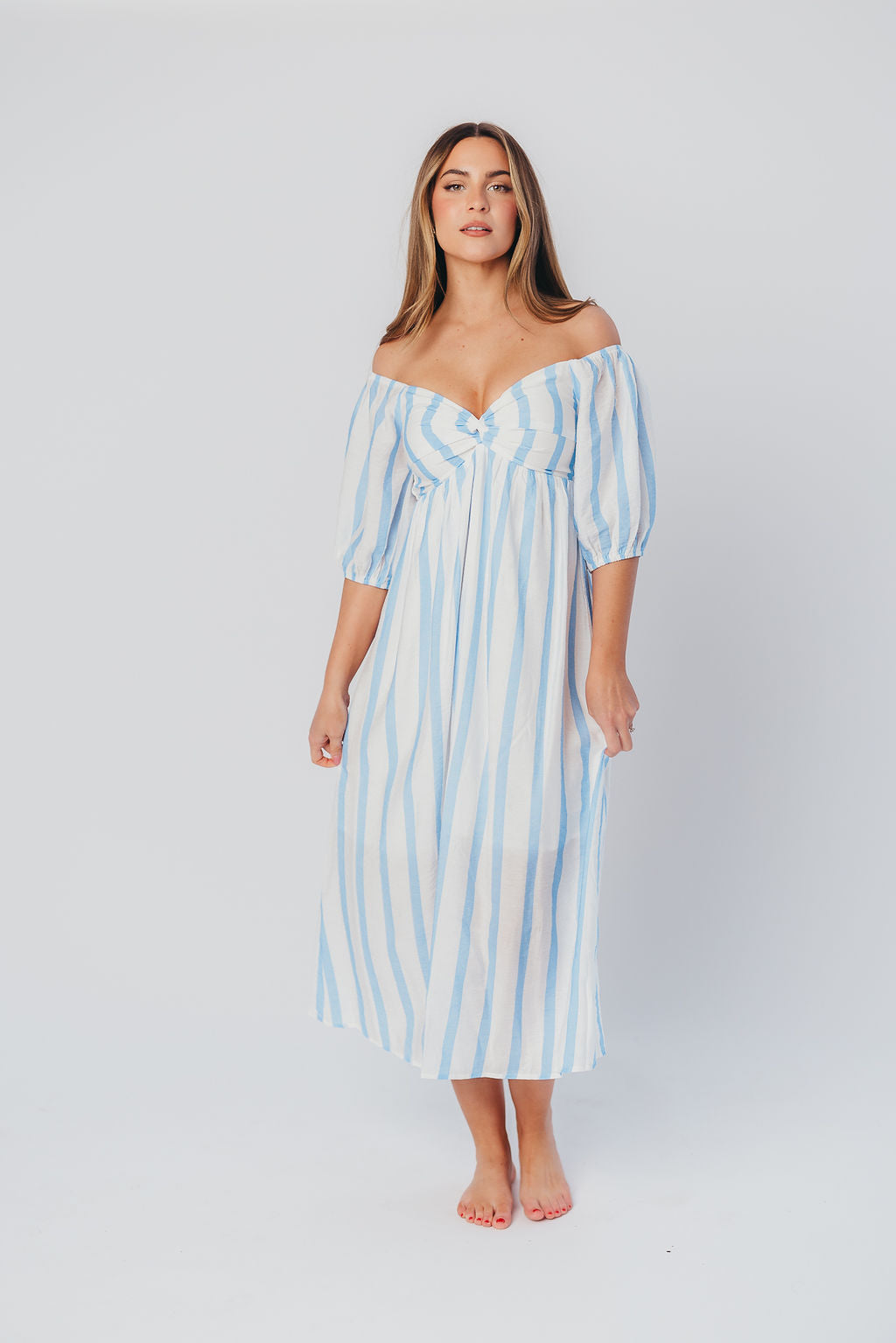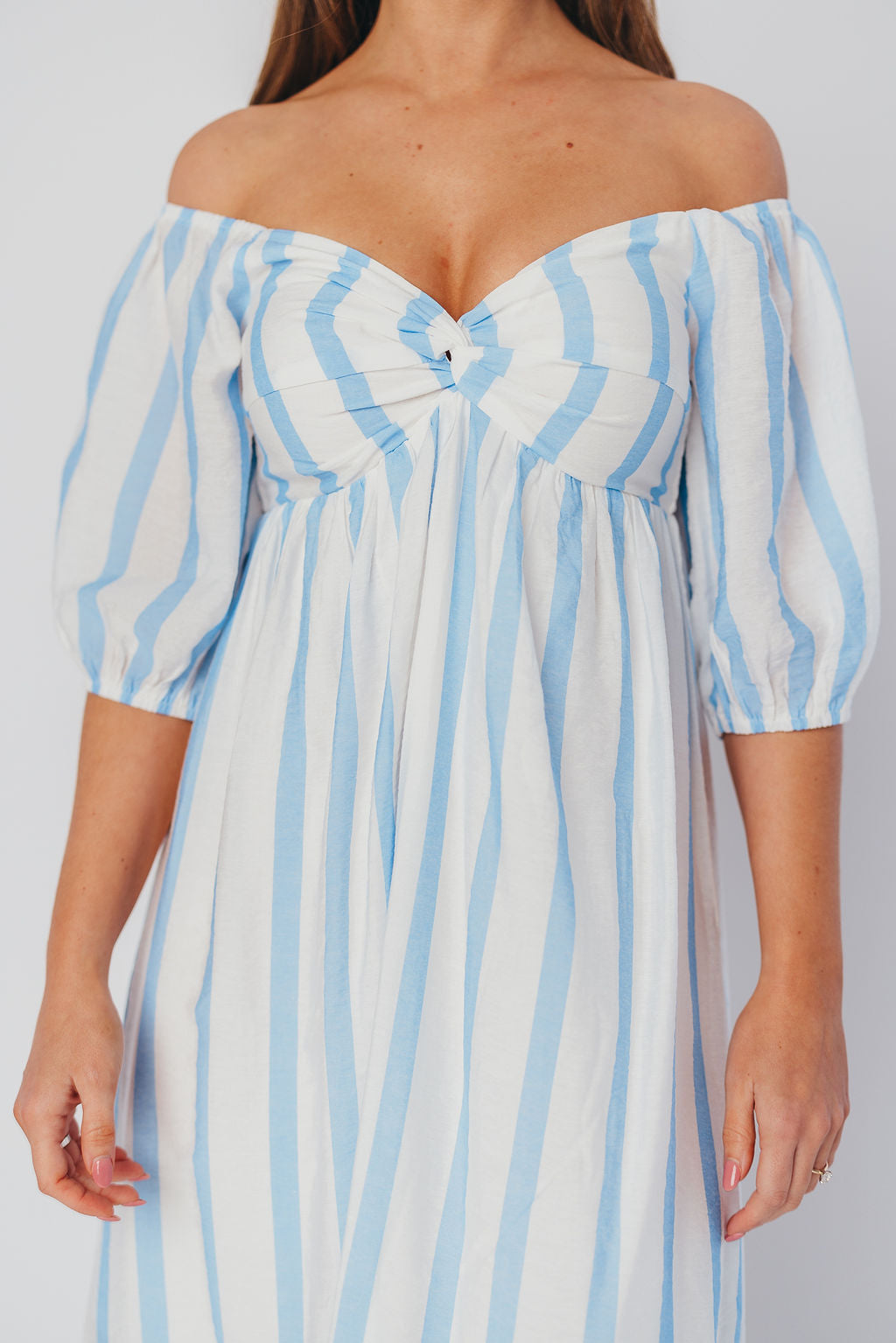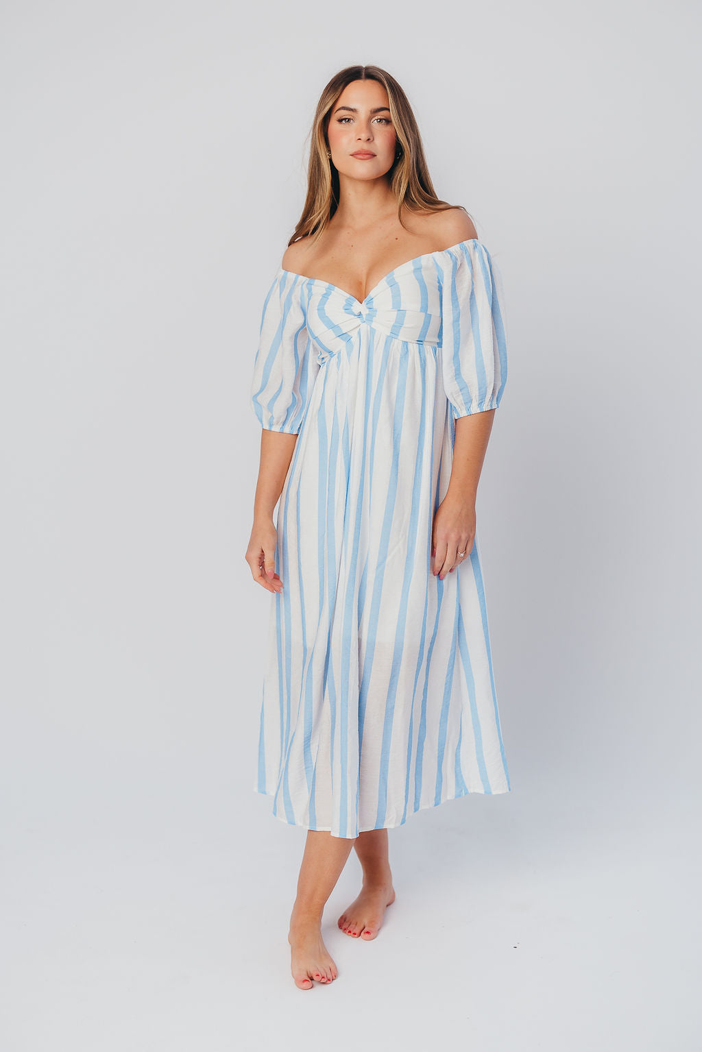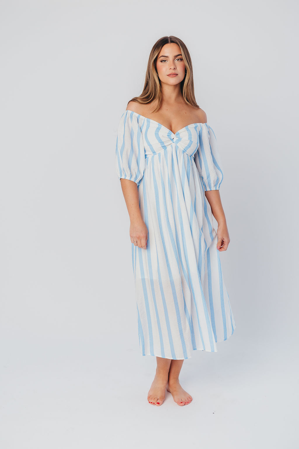 Clara Puffed Sleeve Midi Dress with Twisted Bodice in Cloud
