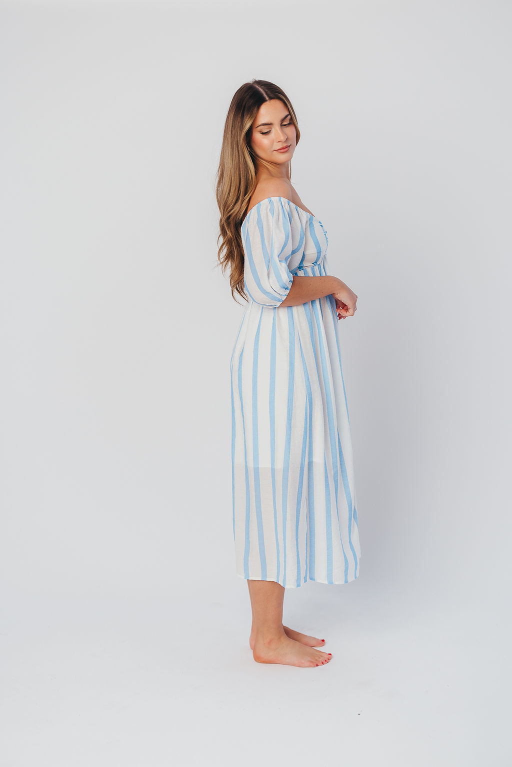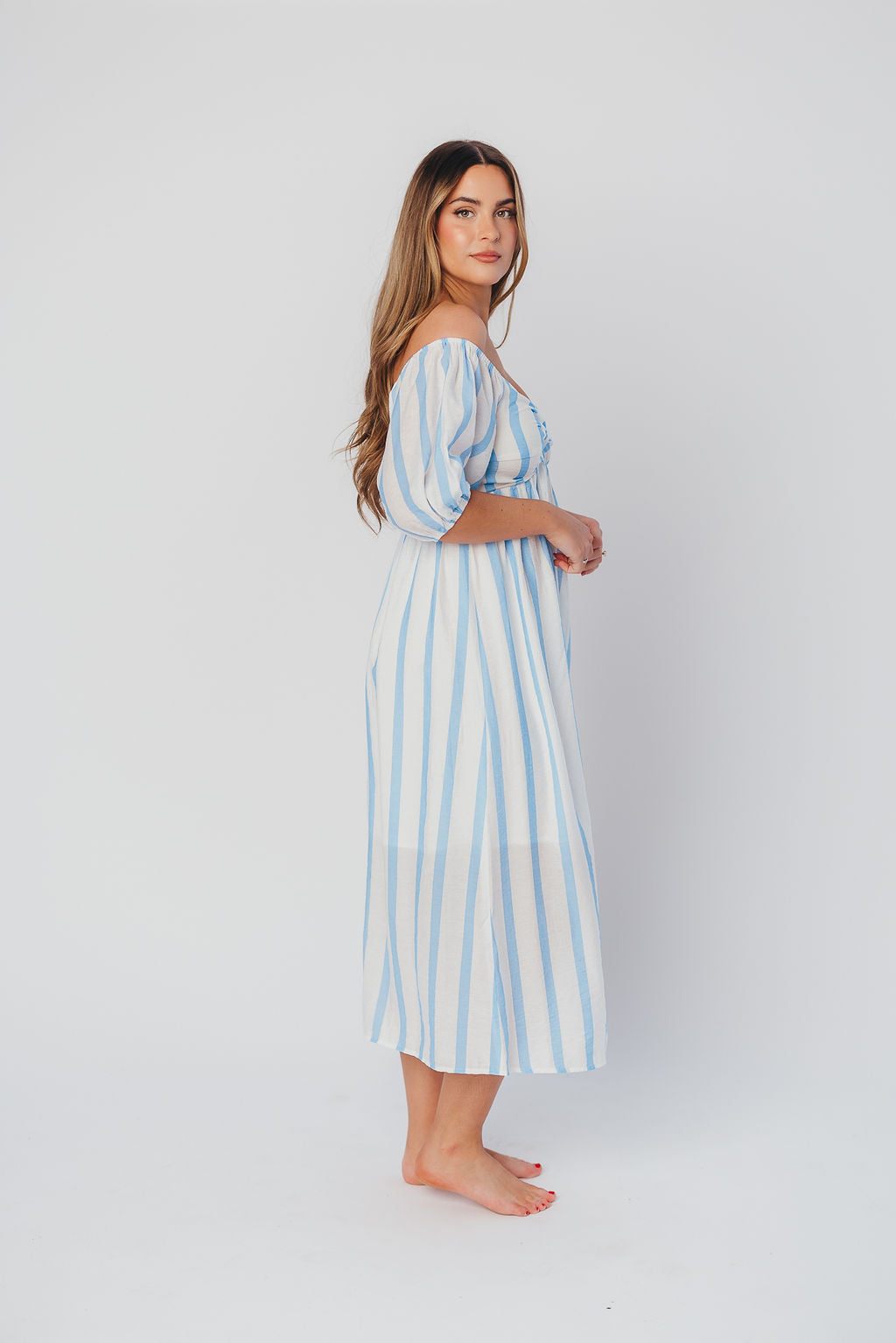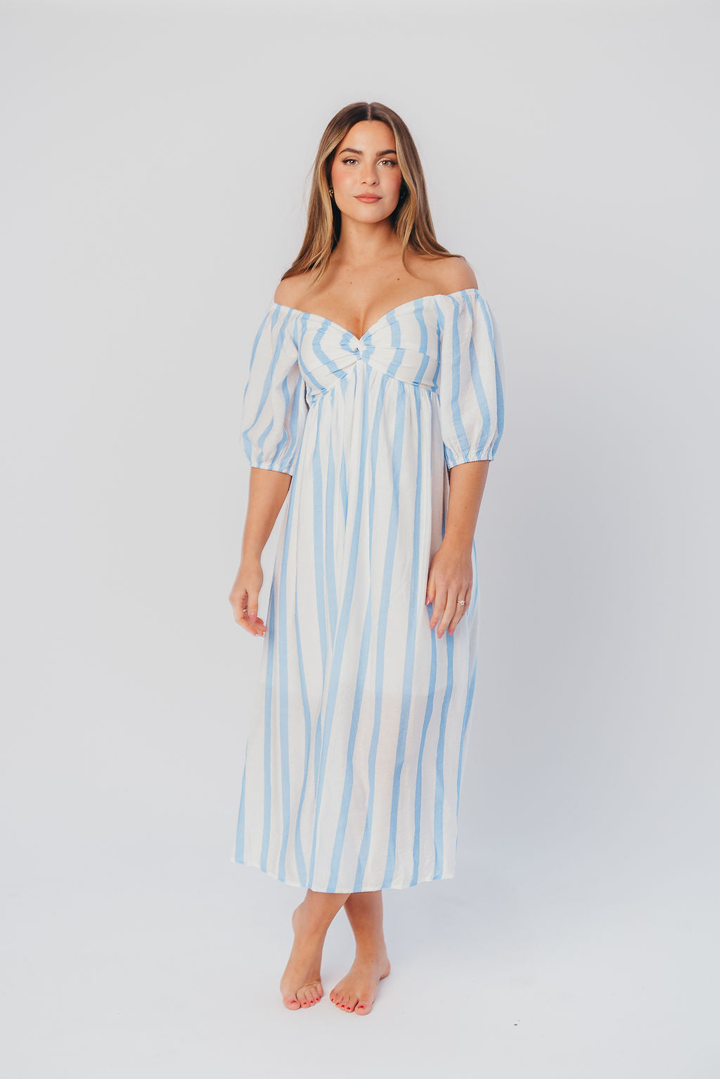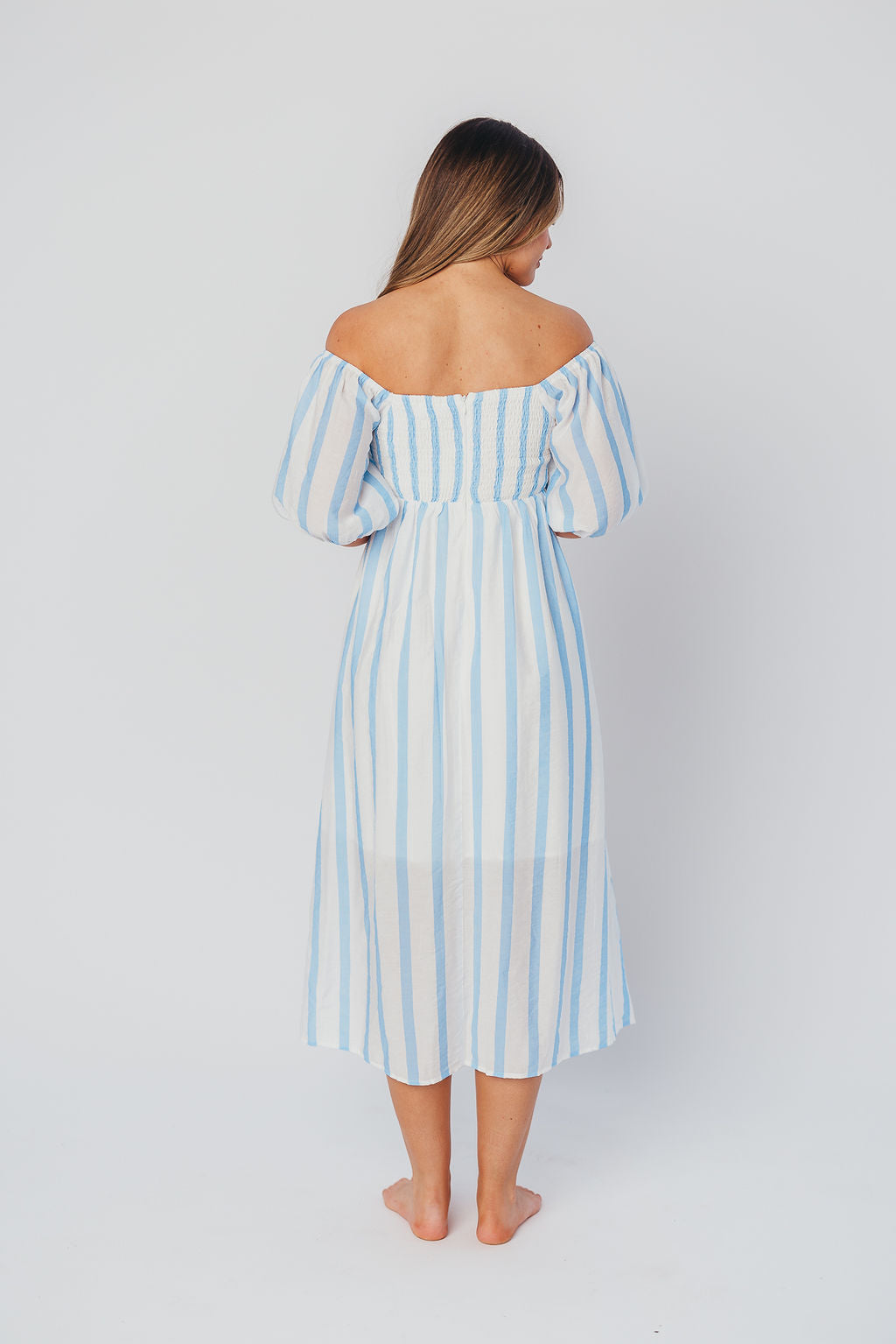Clara Puffed Sleeve Midi Dress with Twisted Bodice in Cloud