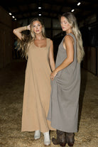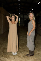 Taryn 100% Cotton Open Back Knit Maxi Dress in Camel
