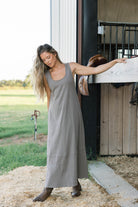 Taryn 100% Cotton Open Back Knit Maxi Dress in Smoke