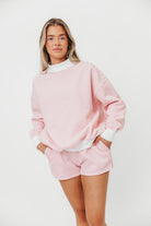 A sweatshirt, but add a mockneck--now you're speaking our language! The Cynthia Big Striped Sweatshirt is cozy, chic, and oh-so-playful. Pair with any of your favorite bottoms, but we recommend the Rylant Sweat Shorts for a curated look in seconds.