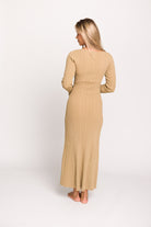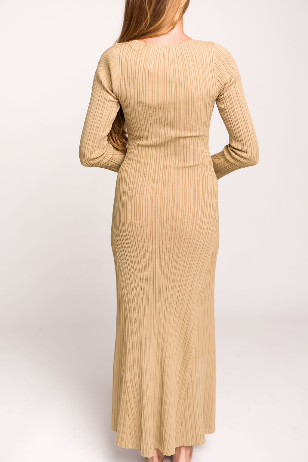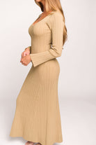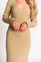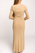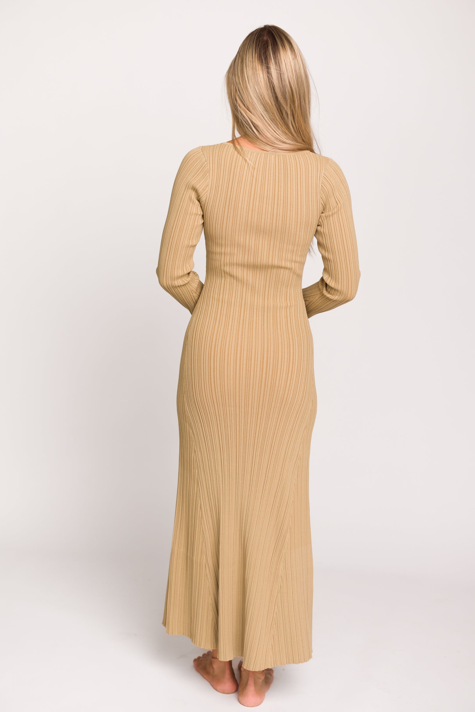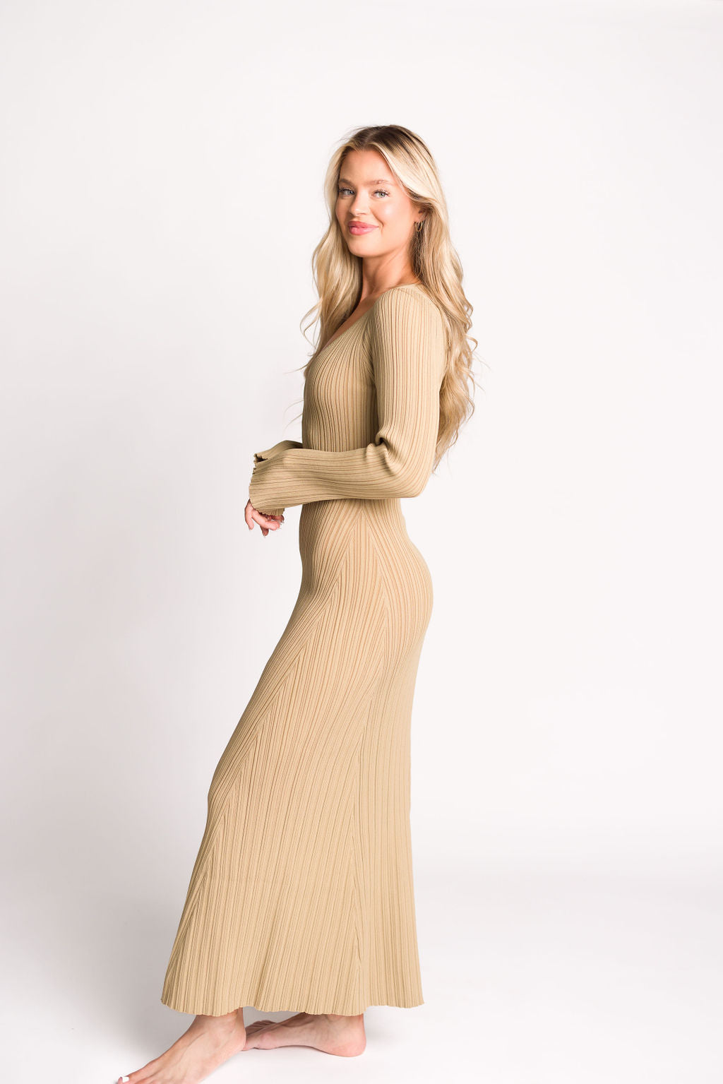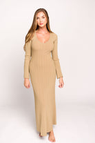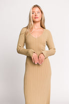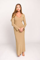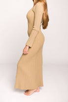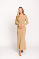 Keaton Knit Maxi Dress with V-Neckline in Beige